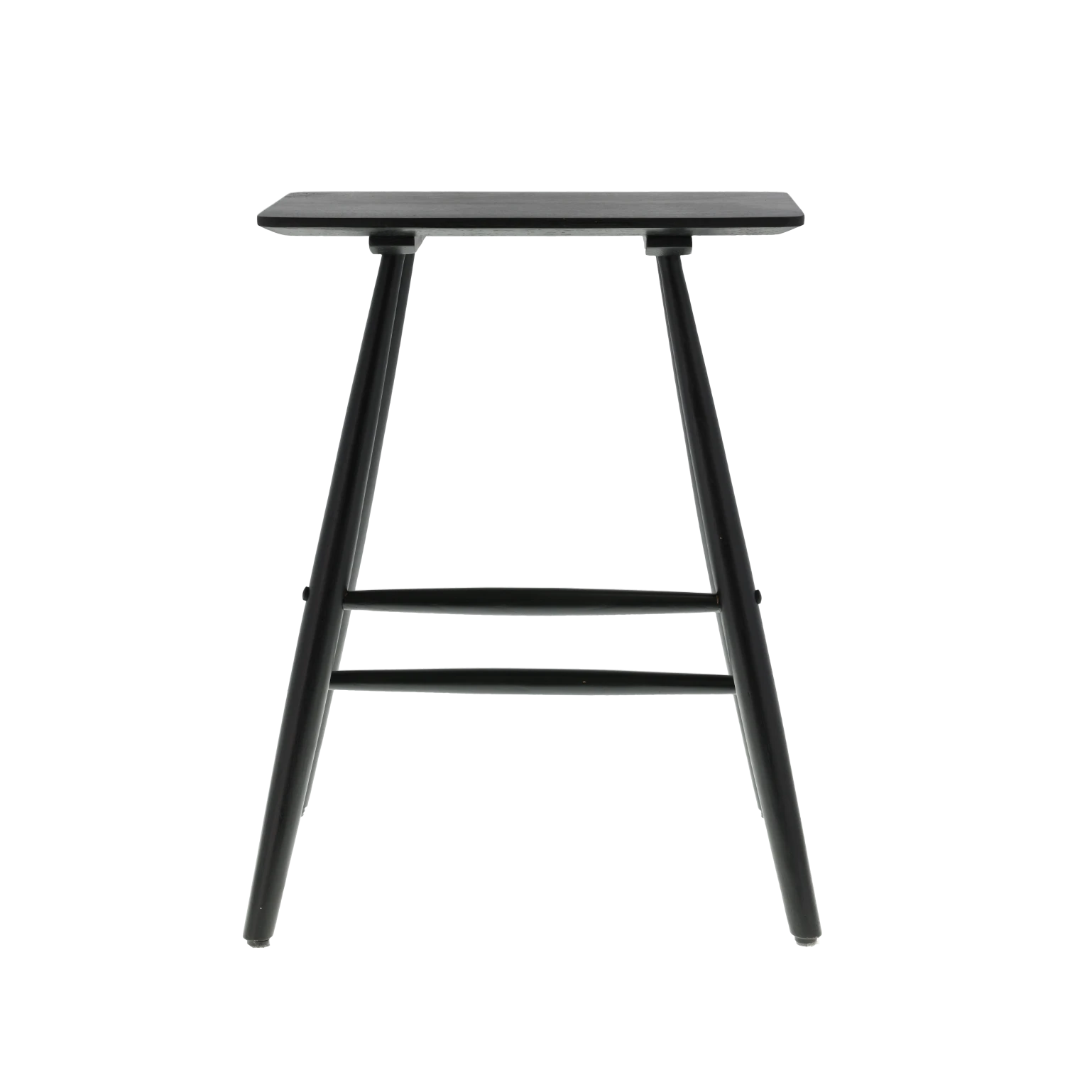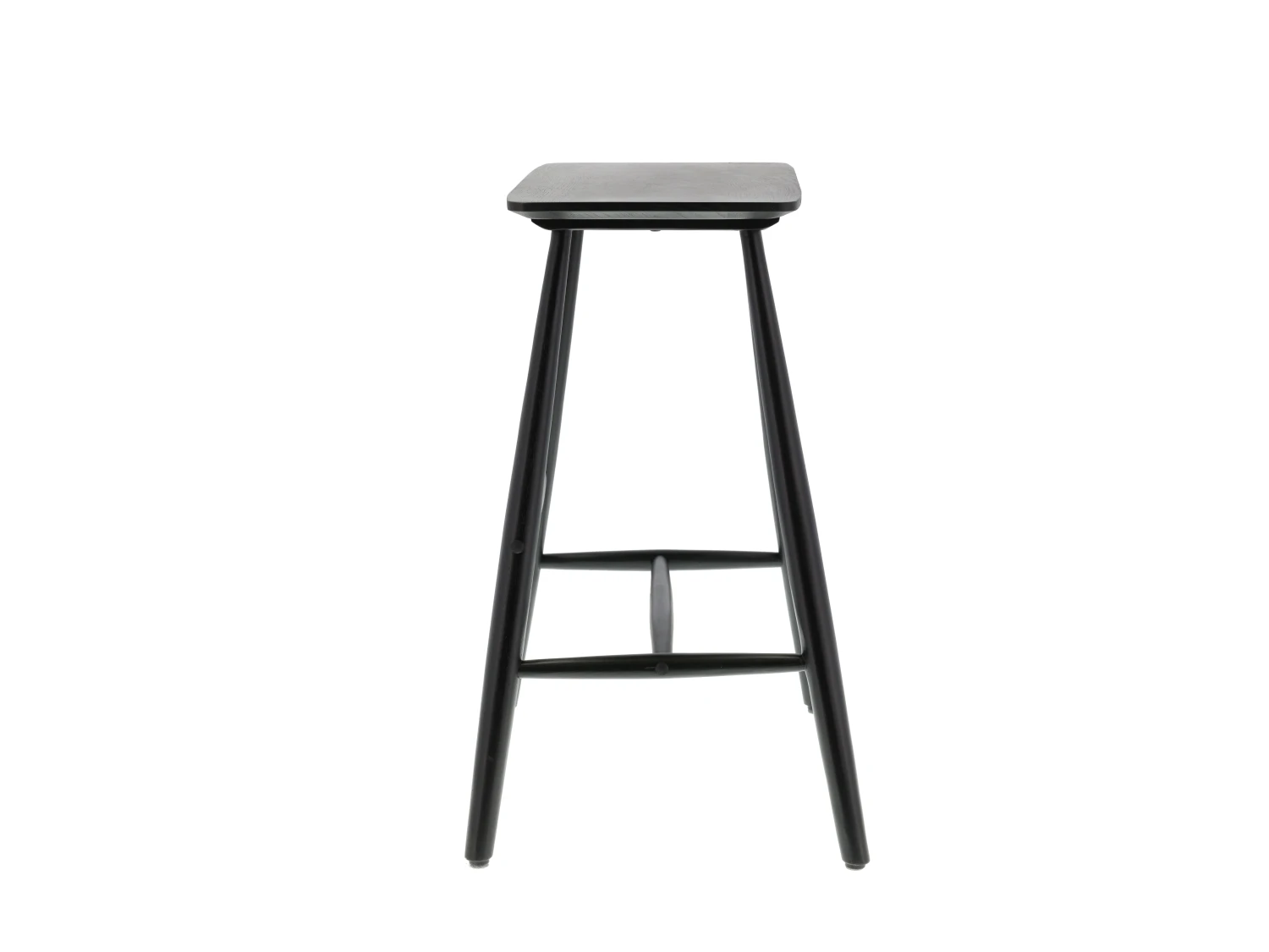Hoher Hocker aus schwarzlackiertem Eichenholz. Das schlichte, stilvolle Design passt perfekt zu einer skandinavischen Einrichtung mit entspannter Atmosphäre. Der Hocker kann auch als Barhocker verwendet werden und ist aus wunderschönem Eichenholz hergestellt. Für die Verwendung im Innenbereich.