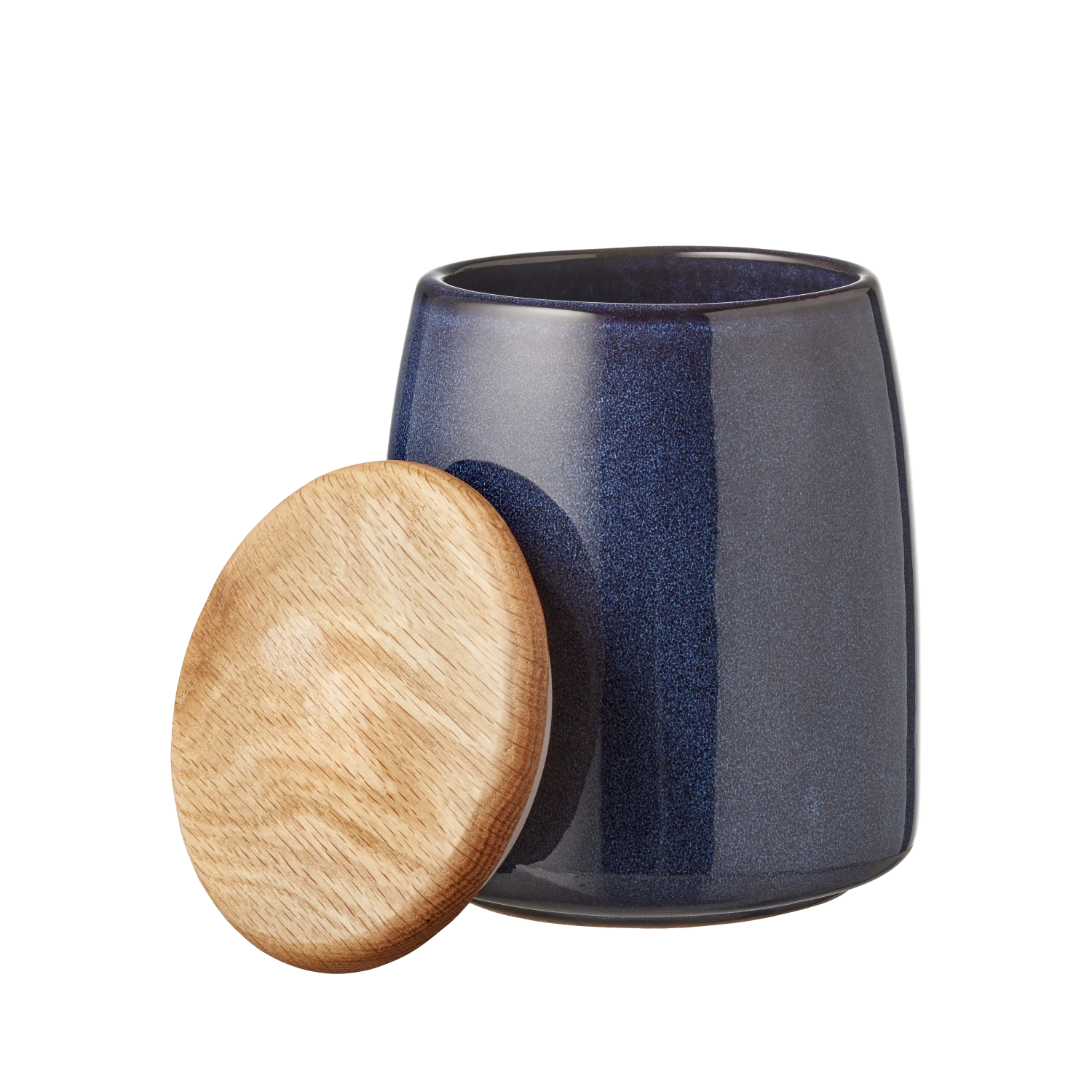 Tolles Glas aus Steinzeug mit glänzender, farbiger Glasur zur Aufbewahrung von Sonnenblumenkernen, Reis, Salz, Tee o.ä. Der Deckel ist mit einem Silikonring versehen und schließt völlig dicht. Das Glas kann im Geschirrspüler gewaschen werden, während der Holzdeckel von Hand abgewaschen wird. 16,5 cm hoch.