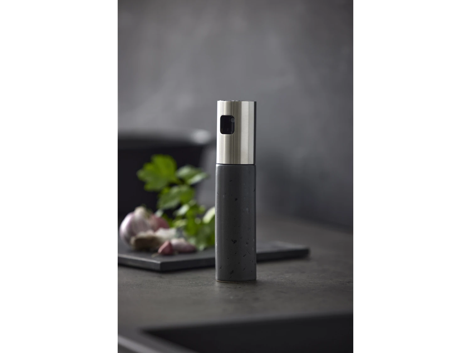Mit der dekorativen Sprühflasche aus Steinzeug mit Oberteil aus Edelstahl können Sie genau die Menge an Öl dosieren, die entweder beim Kochen oder kurz vor dem Servieren bei Salaten, Gemüse, Fisch und anderen Gerichten benötigt wird. Praktisches Küchenzubehör, das immer griffbereit ist. 10 cl. Durchmesser 4 x 18 cm.
