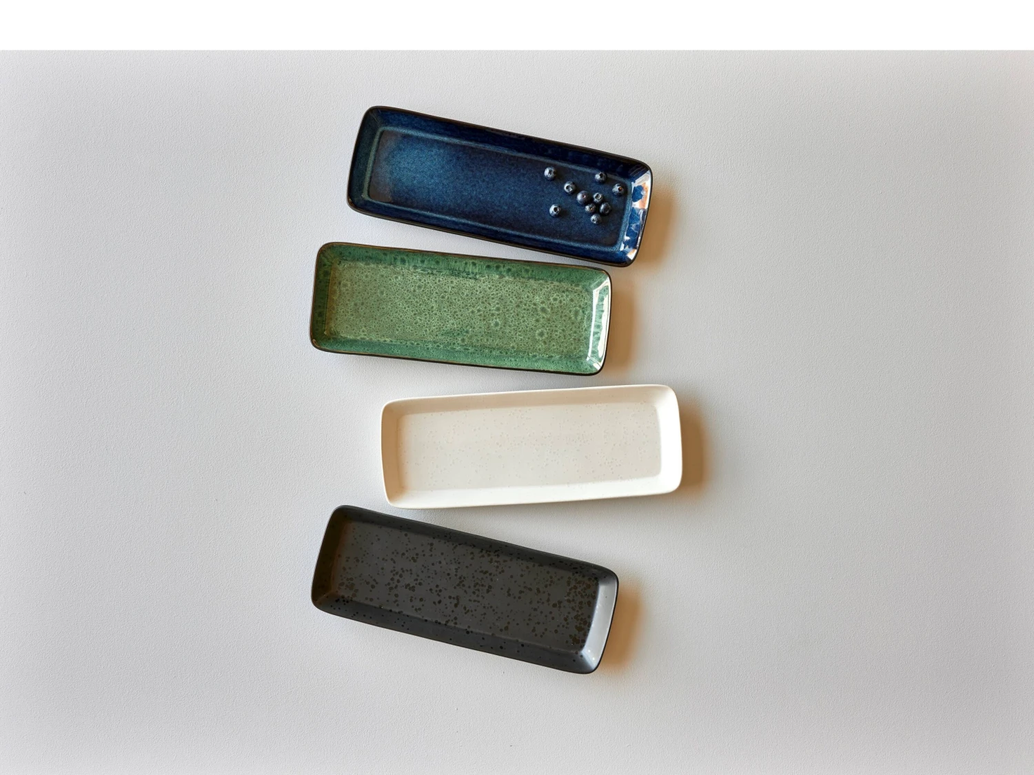 Die reaktive Glasur von BITZ verleiht dem Steinzeug besonderen Glanz und macht jedes Produkt einzigartig. Kratzer und Schnittspuren werden zu sehen sein.