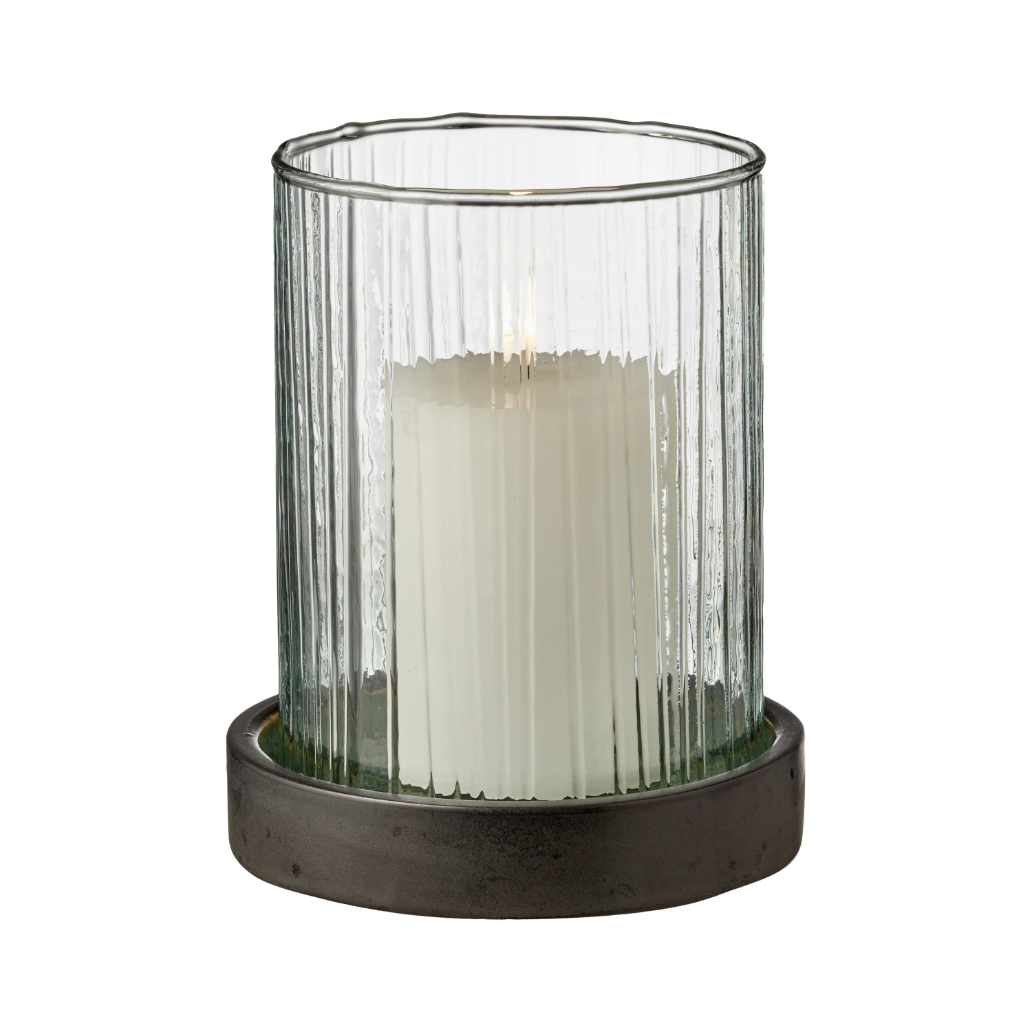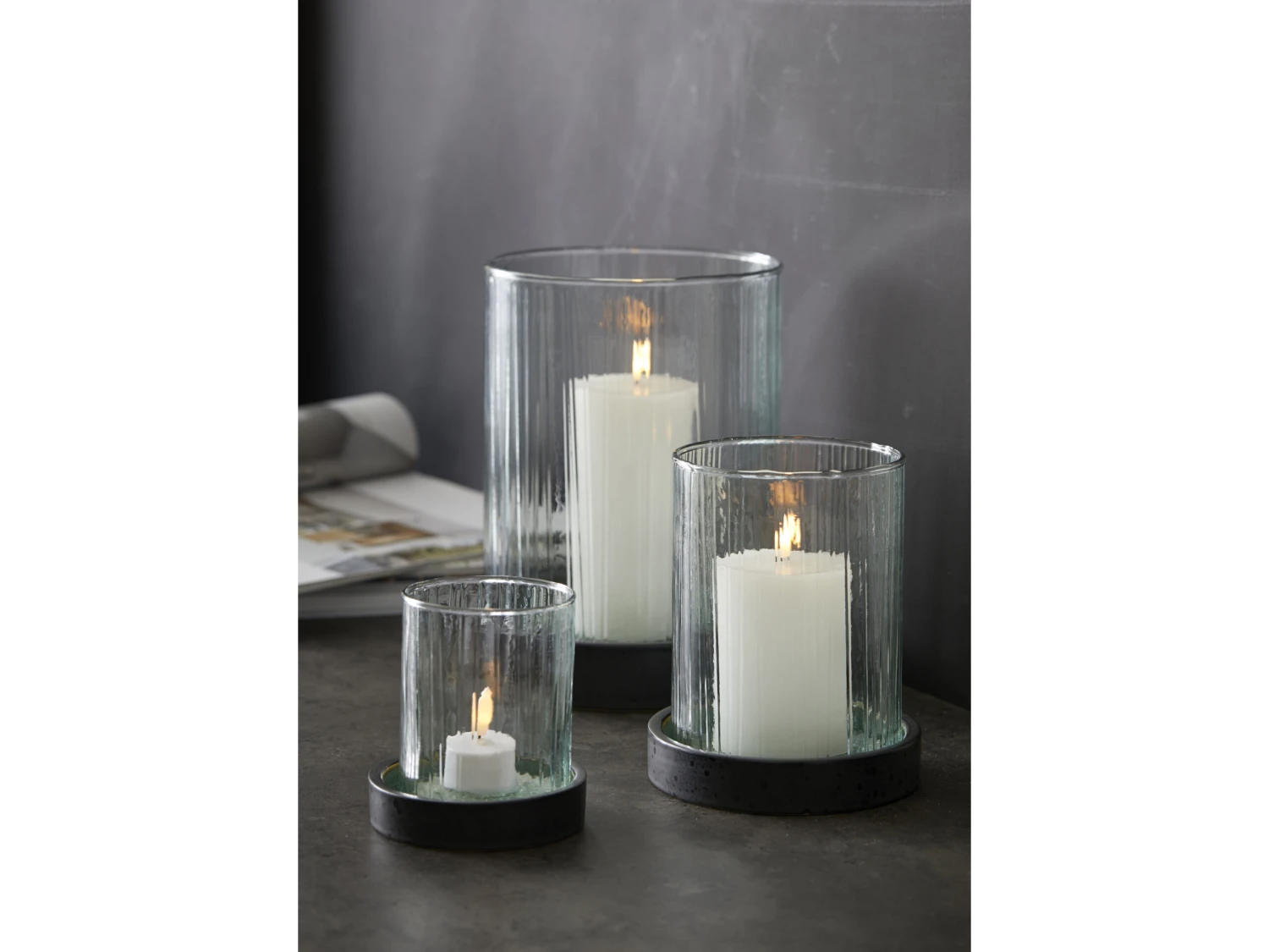 Schaffen Sie eine warme und gemütliche Atmosphäre mit hübschen Oasen aus Kerzen. Die BITZ Hurricane Lampe aus rustikalem Glas mit Sockel aus Steinzeug und einer LED-Stumpenkerze mit Timer ist eine hervorragende Wahl, wenn Sie sich Ruhe und Gemütlichkeit bei Kerzenschein wünschen. 17 cm hoch, grünes Glas und mattschwarz/glänzend grüner Sockel.