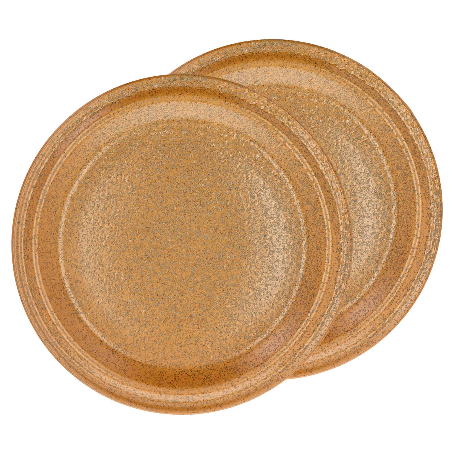 2 Essteller aus Porzellan mit einer hübschen, reaktiven Glasur. Sie haben eine fantastische Optik mit einer einzigartigen Oberfläche, da jedes einzelne Produkt von Hand dekoriert wird und daher Farbe und Oberfläche variieren können. D 26 cm.