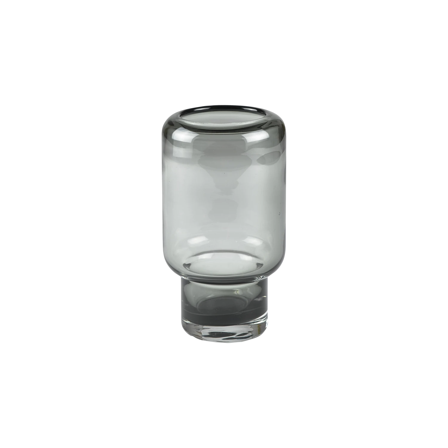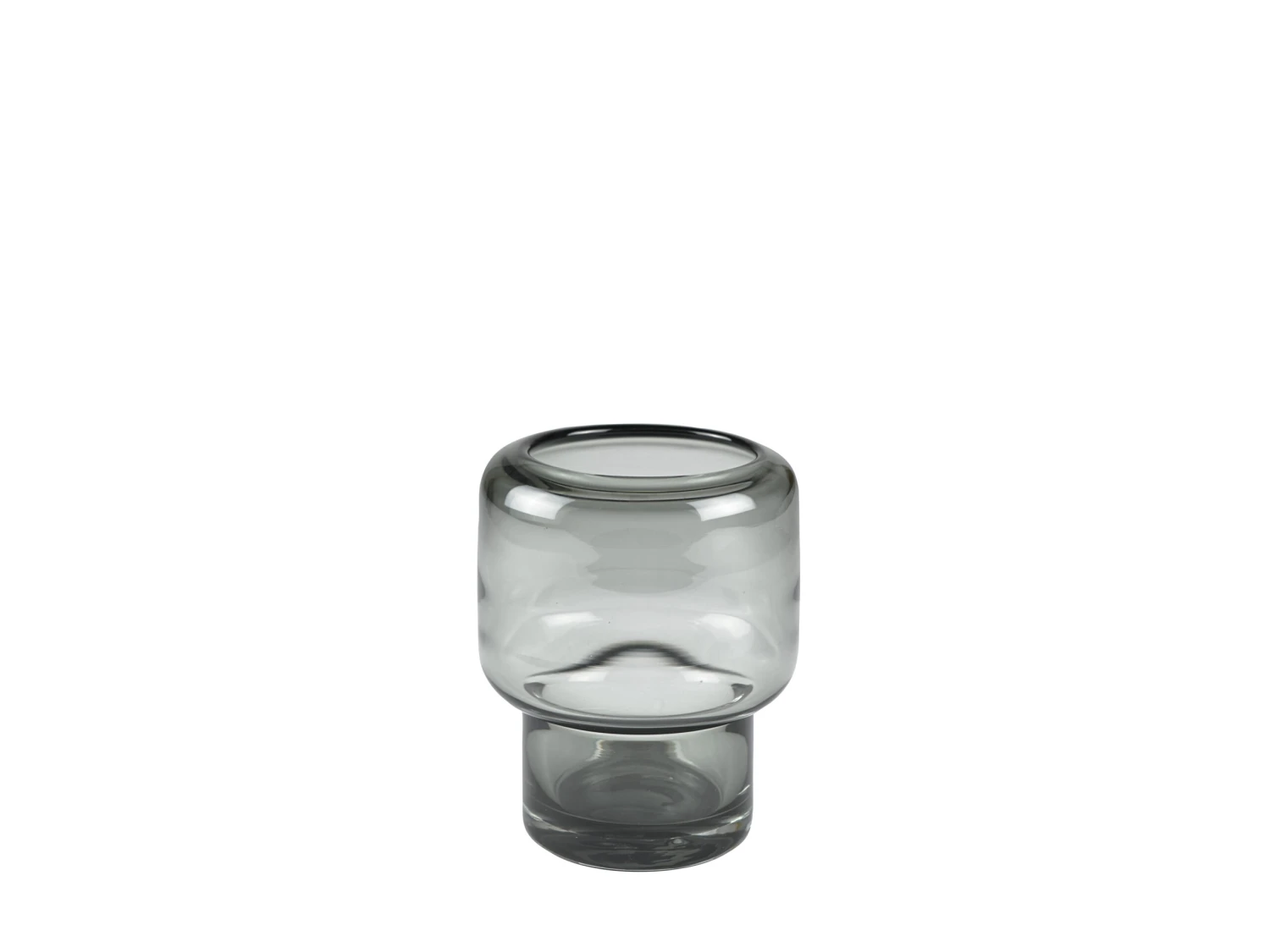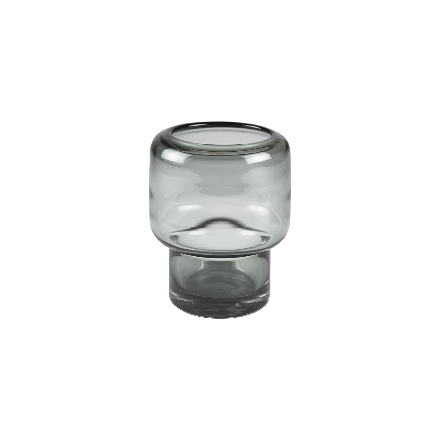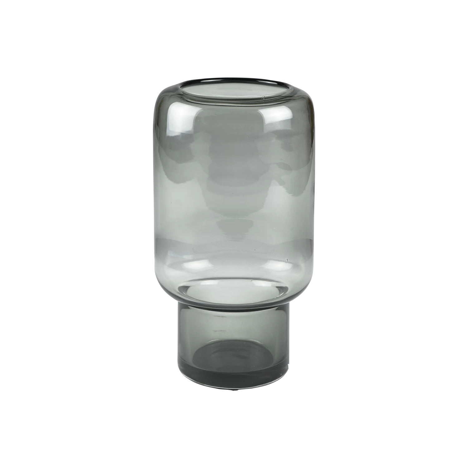 Elegante Vase aus mundgeblasenem und durchgefärbtem Glas. Grau. D 13,5 x H 17 cm. Sehr dekorativ sowohl mit frischen als auch getrockneten Blumen. Mit warmem Wasser reinigen und dann mit einem weichen Tuch abtrocknen.