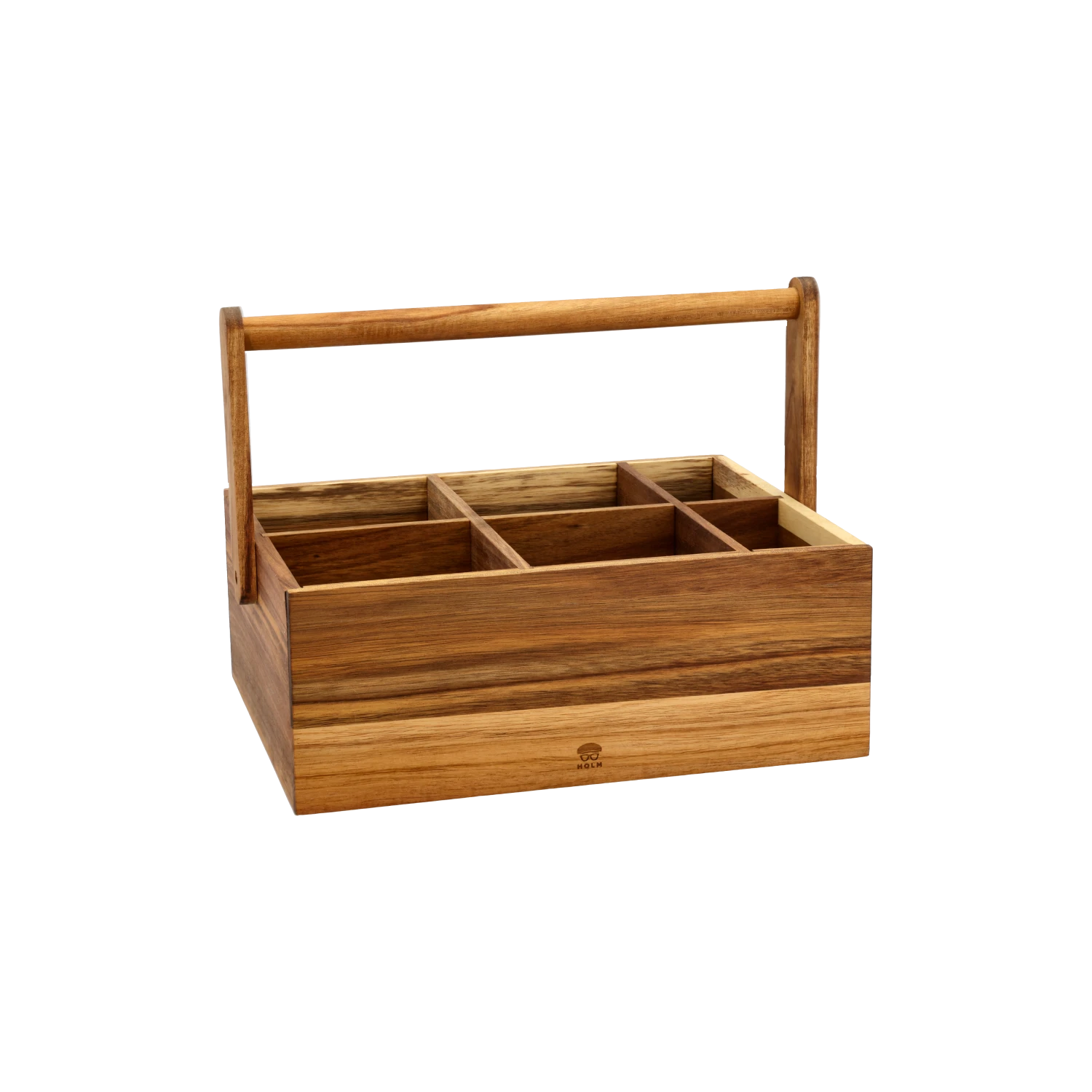 Große Multikiste aus geöltem Akazienholz mit Platz für Flaschen und Zubehör. Die Kiste hat einen stabilen Griff, vier große Fächer für Flaschen und zwei kleinere Fächer zur Aufbewahrung von z.B. Korkenzieher, Weinverschluss und Glasuntersetzern. Die Kiste ist Ihr idealer Helfer, wenn Sie für sich und Ihre Gäste Ihre Lieblingsweine aus dem Weinkühlschrank oder aus dem Keller holen. 37 x 27 x 28 cm.