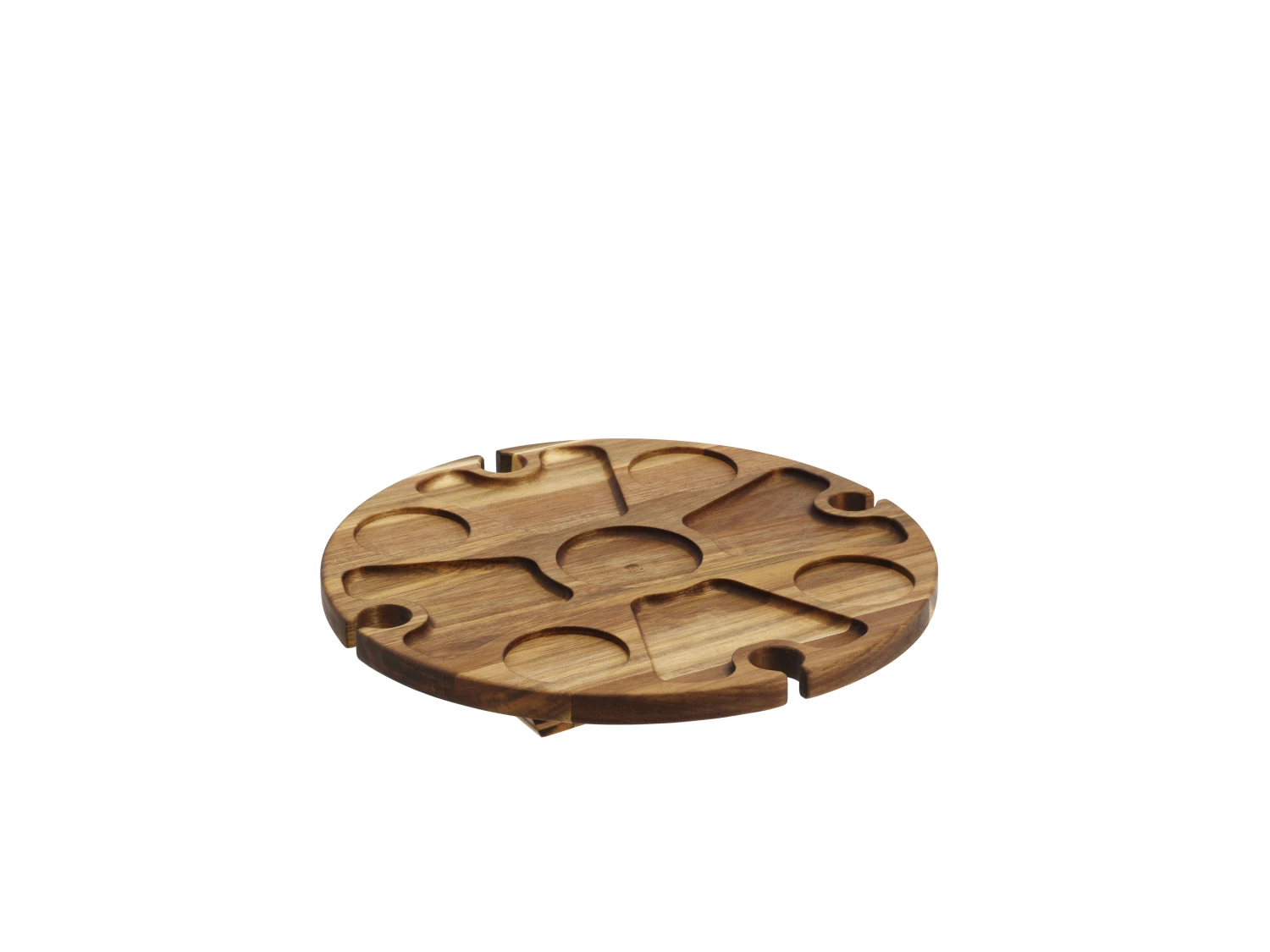 Nehmen Sie den praktischen Picknicktisch aus geöltem Akazienholz mit an den Strand oder in den Park, und Sie können eine gemütliche Mahlzeit genießen. Die Beine können ausgeklappt werden, sodass der Tisch etwas erhöht über dem Boden steht. In den Aussparungen des Tisches ist Platz für vier Weingläser, in der Mitte kann die Weinflasche stehen und die runden Aussparungen passen genau für die Auflaufförmchen oder Snack-Schalen von HOLM. Durchmesser 37,5 cm, Höhe 13,6 cm.