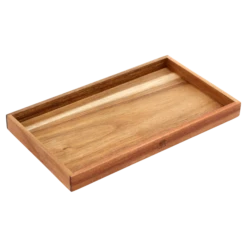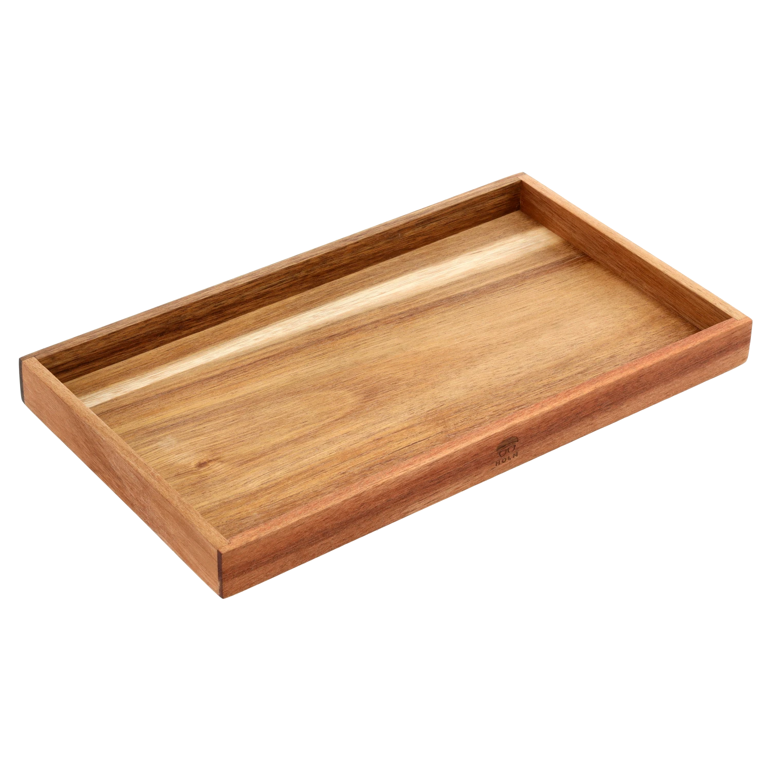Tablett aus Akazienholz. Für die Verwendung des Tabletts in der Küche sind der Phantasie keine Grenzen gesetzt. Es eignet sich perfekt, um Öle, Essig, Gewürze und Kräuter darauf zu stellen und zum Servieren von Snacks. 35 x 20 x 3 cm.