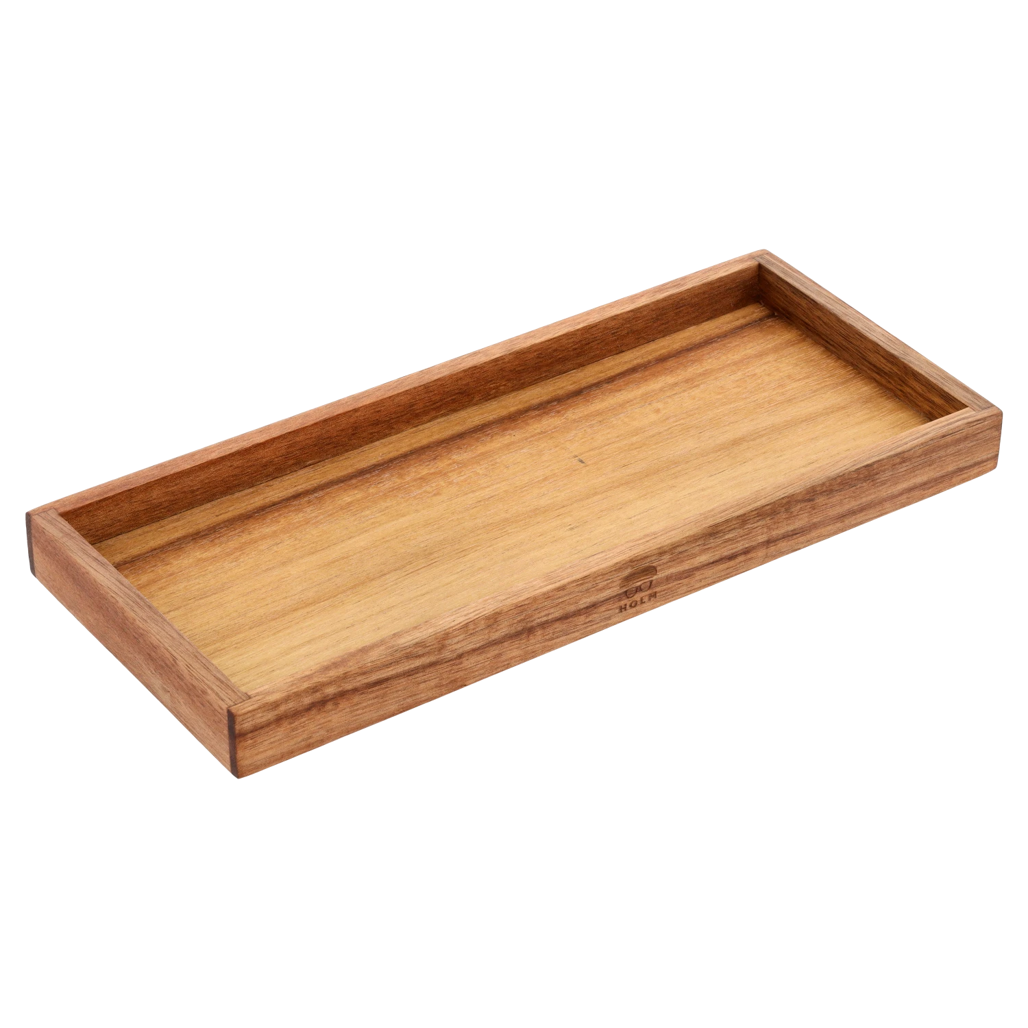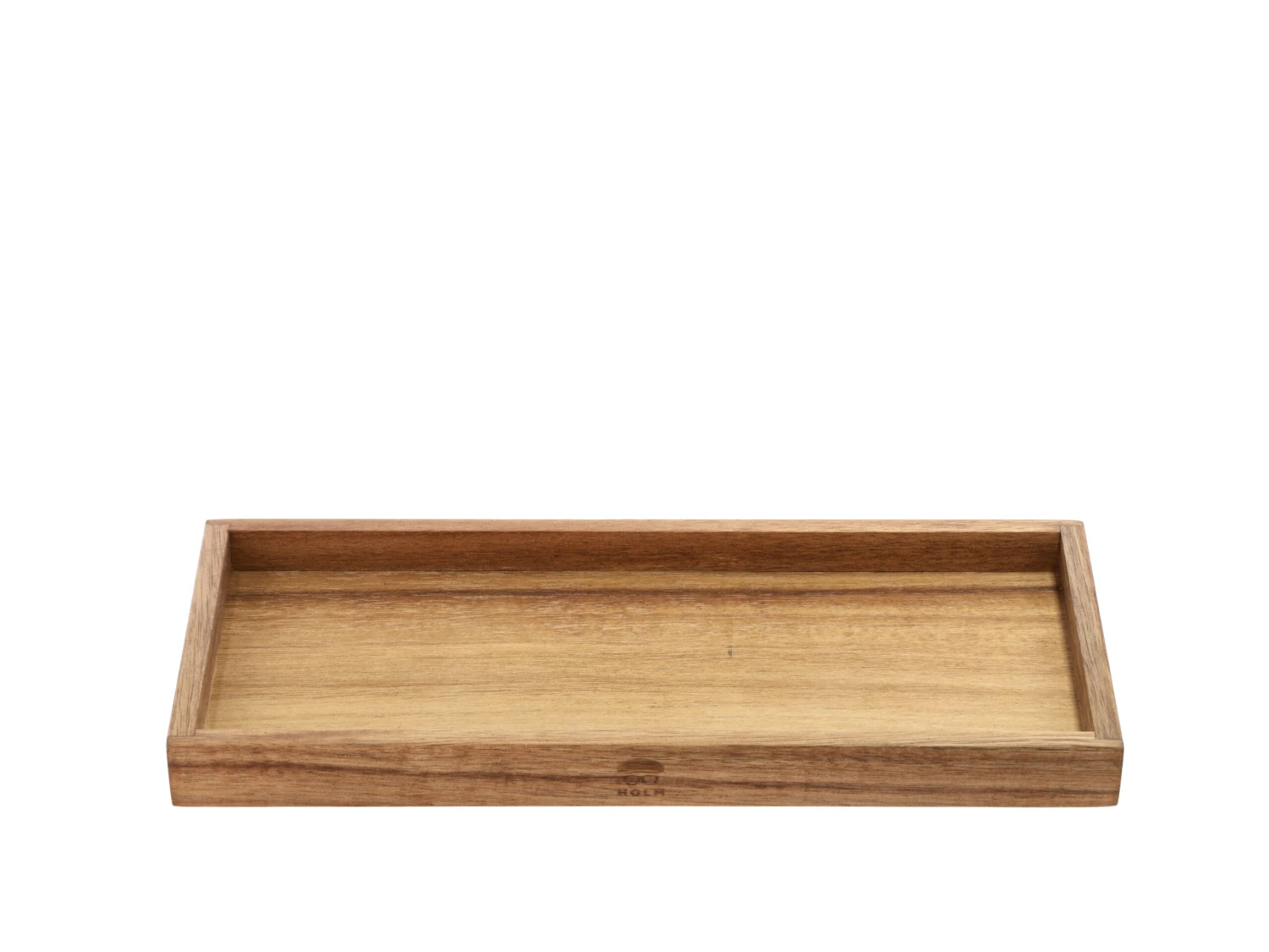 Tablett aus Akazienholz. Für die Verwendung des Tabletts in der Küche sind der Phantasie keine Grenzen gesetzt. Es eignet sich perfekt, um Öle, Essig, Gewürze und Kräuter darauf zu stellen und zum Servieren von Snacks. 30 x 13 x 2,5 cm.