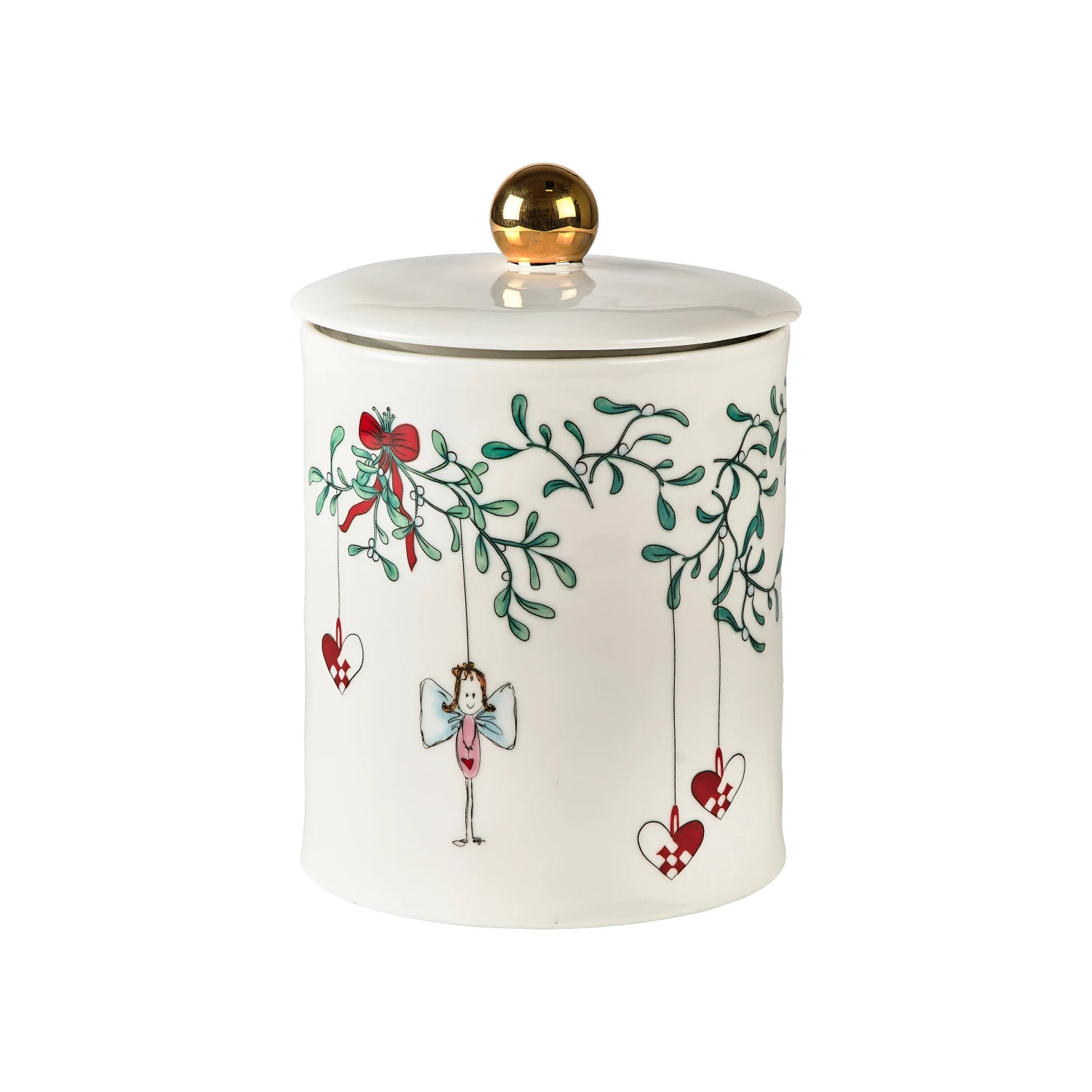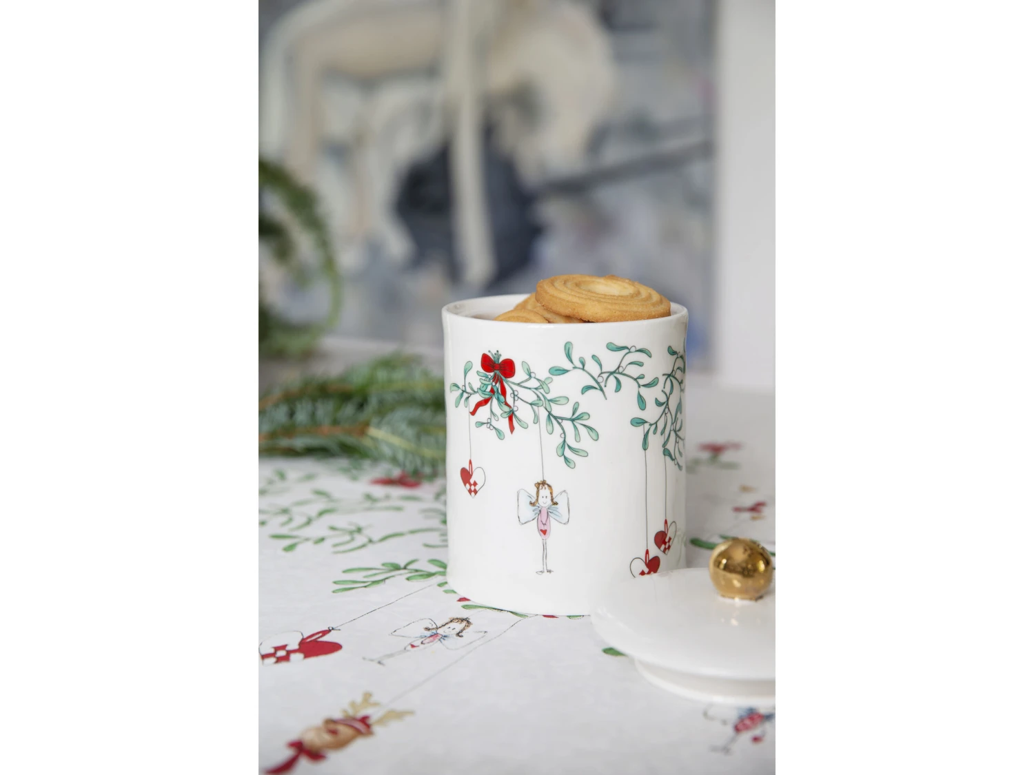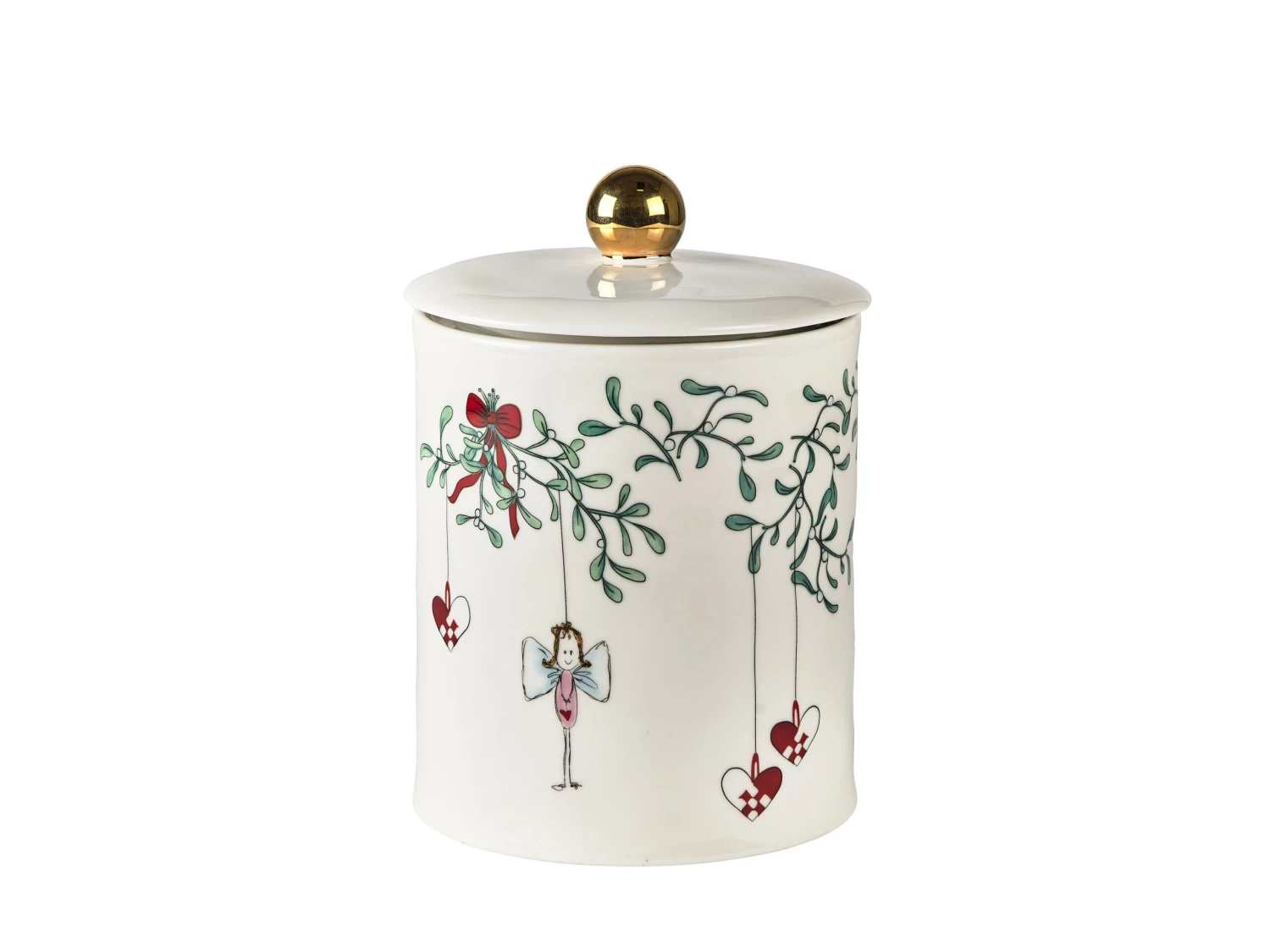 Das hübsche Porzellanglas mit Deckel hat eine unebene Oberfläche mit schönen Weihnachtsmotiven. Vielleicht verstecken sich ja Plätzchen und Weihnachtssüßigkeiten im Glas, wer weiß? Der Deckel ist mit einem Ring aus Silikon ausgestattet, sodass er dicht schließt und keine Luft an den geheimen Inhalt des Glases kommt. Höhe 15 cm, Durchmesser 13 cm.
