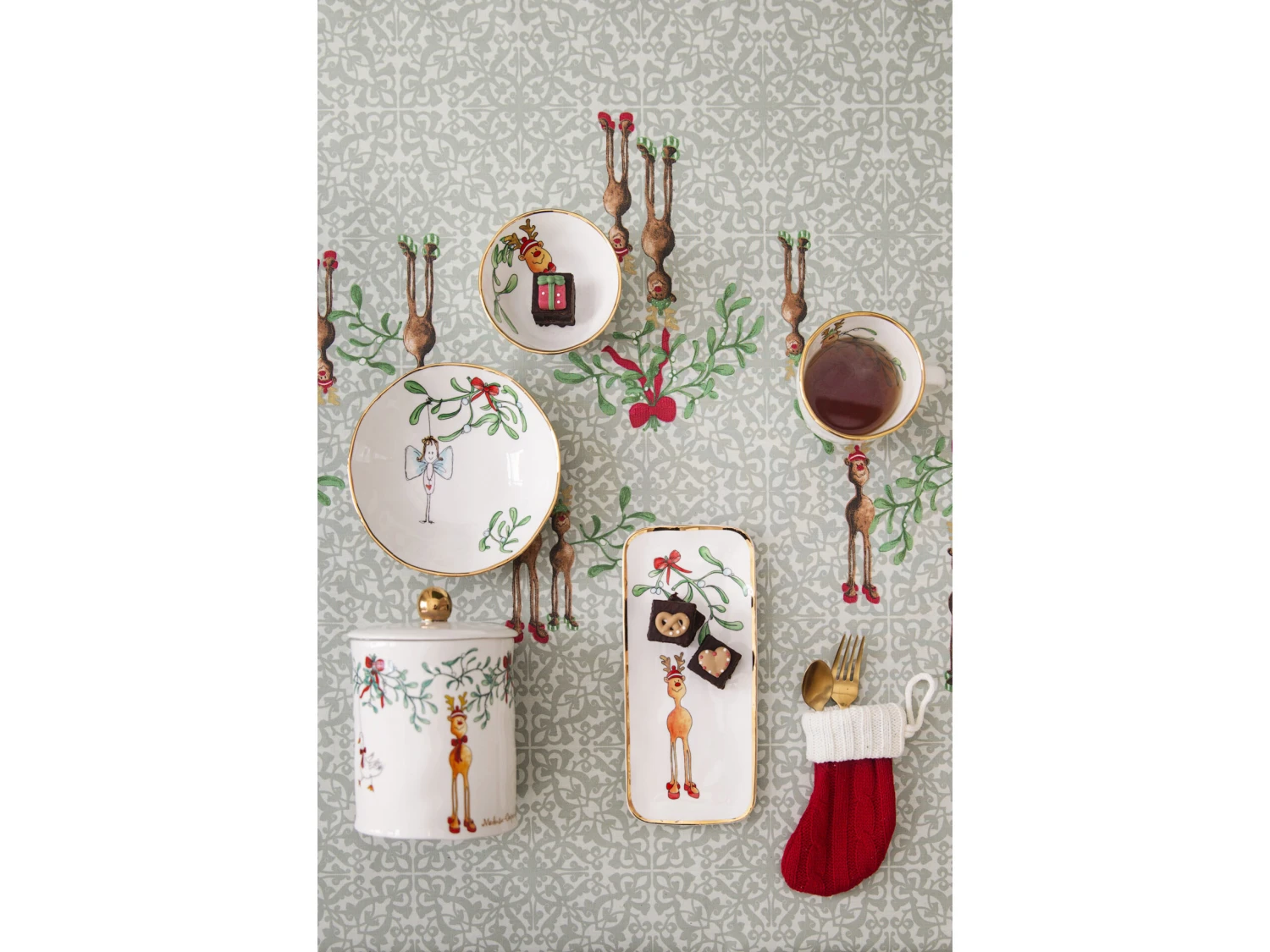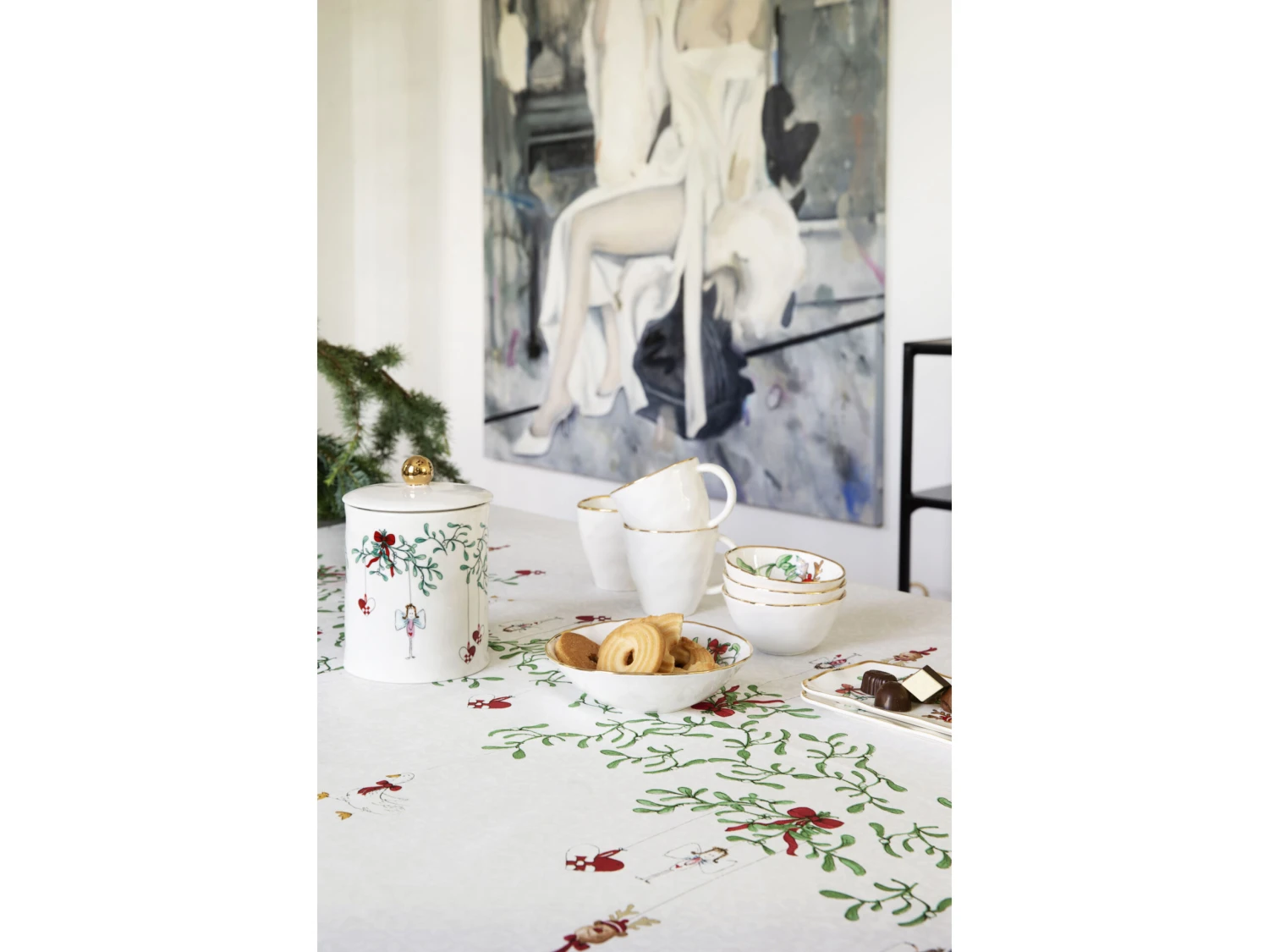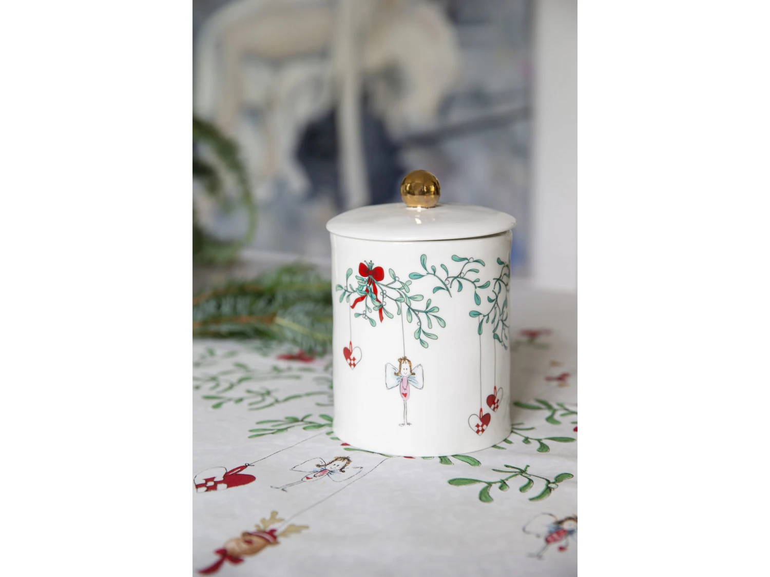 Das hübsche Porzellanglas mit Deckel hat eine unebene Oberfläche mit schönen Weihnachtsmotiven. Vielleicht verstecken sich ja Plätzchen und Weihnachtssüßigkeiten im Glas, wer weiß? Der Deckel ist mit einem Ring aus Silikon ausgestattet, sodass er dicht schließt und keine Luft an den geheimen Inhalt des Glases kommt. Höhe 15 cm, Durchmesser 13 cm.