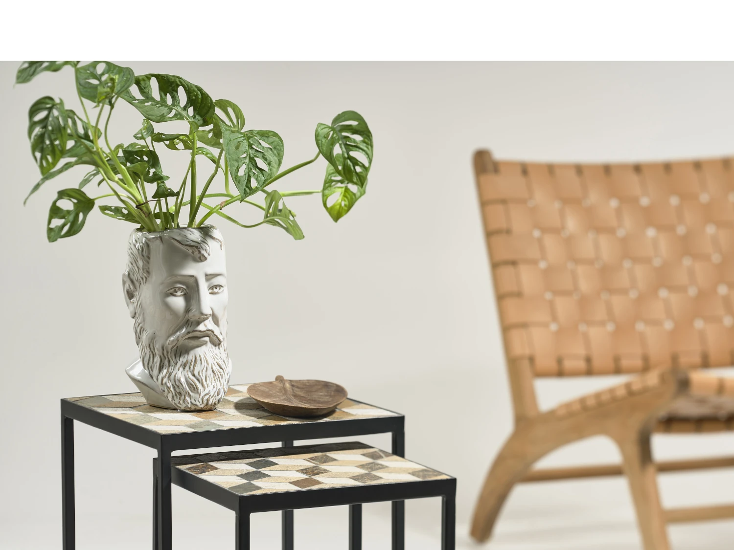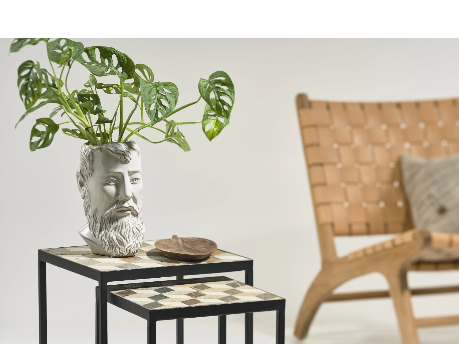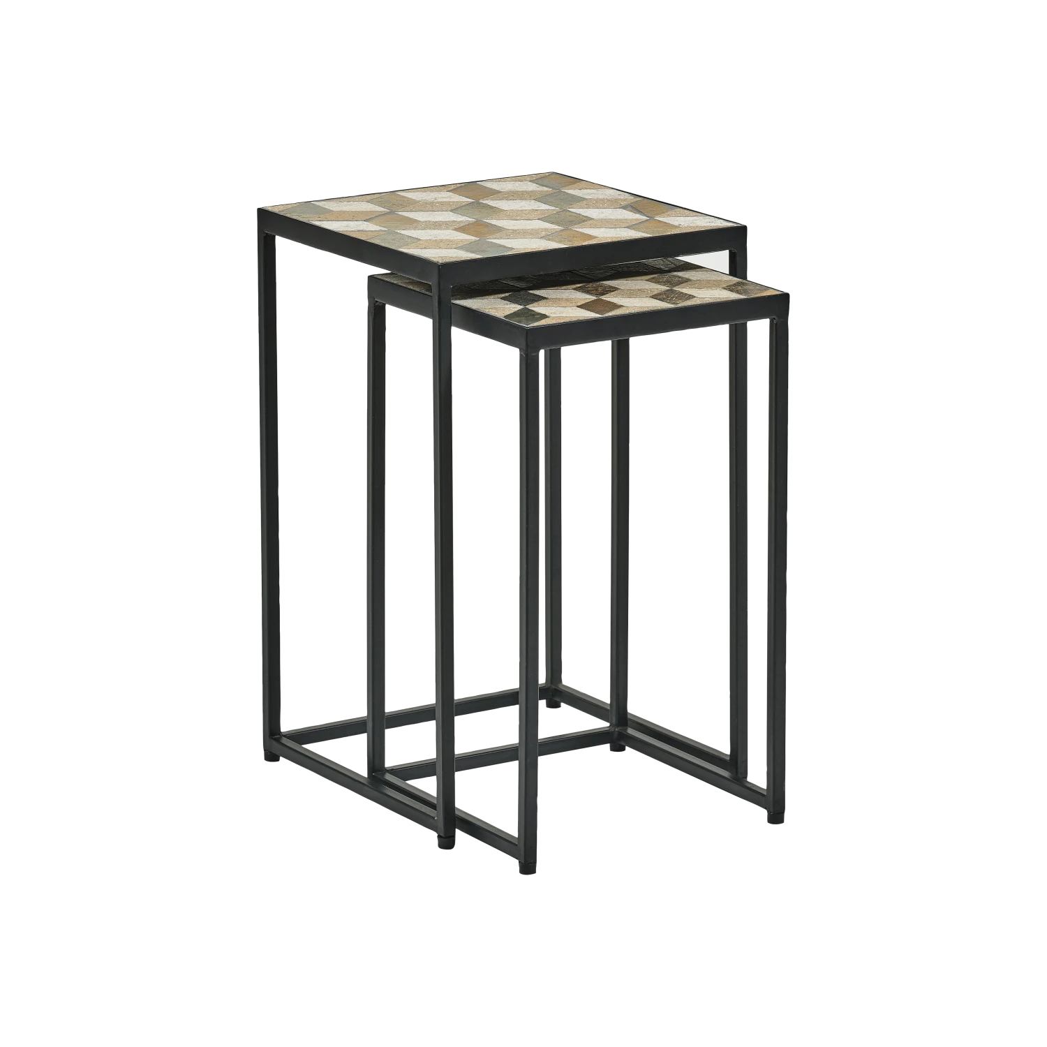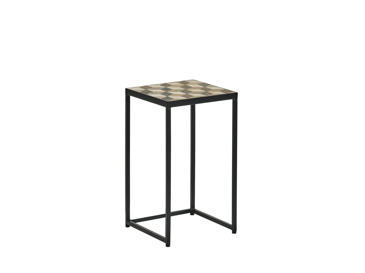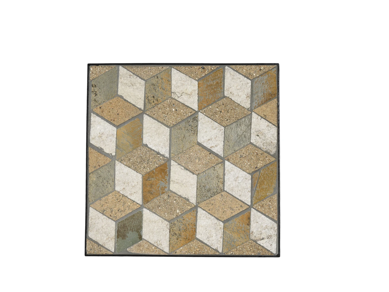 Beistelltisch mit gemustertem Einsatz aus Stein. Der Tisch sieht überall in der Wohnung toll aus: Stellen Sie ihn als Ergänzung zum Couchtisch ins Wohnzimmer, in den Flur oder ins Schlafzimmer. Es nimmt nicht viel Platz in Anspruch und lässt sich leicht umstellen.