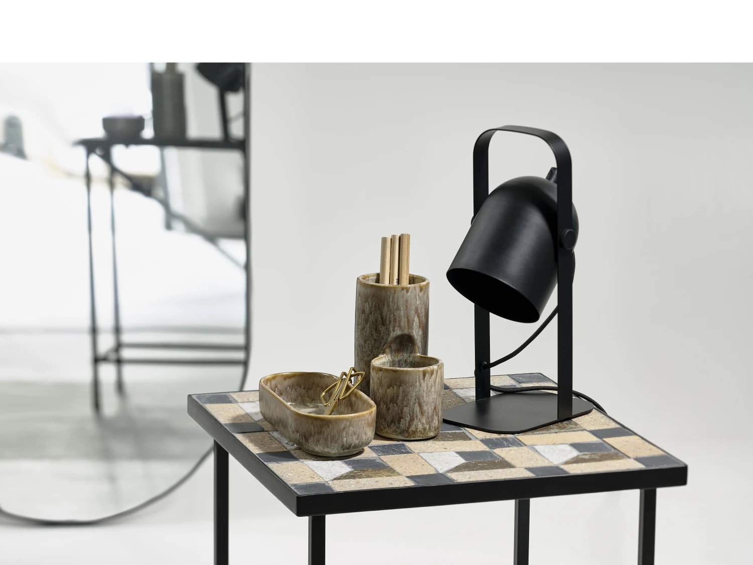 Beistelltisch mit gemustertem Einsatz aus Stein. Der Tisch sieht überall in der Wohnung toll aus: Stellen Sie ihn als Ergänzung zum Couchtisch ins Wohnzimmer, in den Flur oder ins Schlafzimmer. Es nimmt nicht viel Platz in Anspruch und lässt sich leicht umstellen.