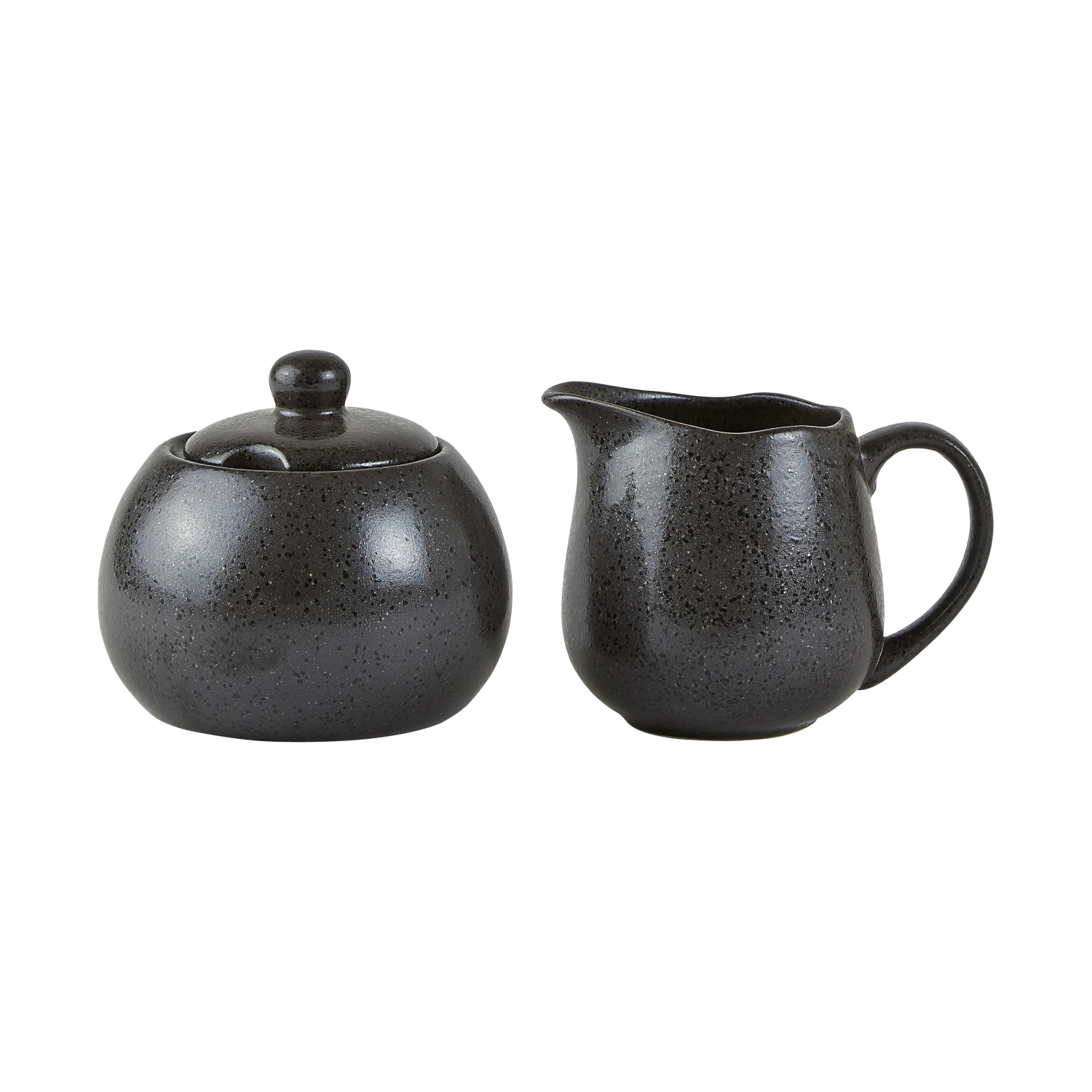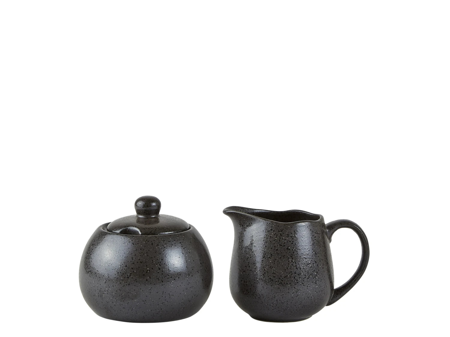 Zuckerdose und Sahnekännchen 2 Stck. Steingut Koksgrau