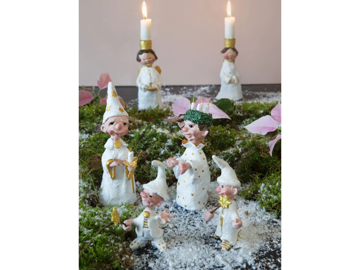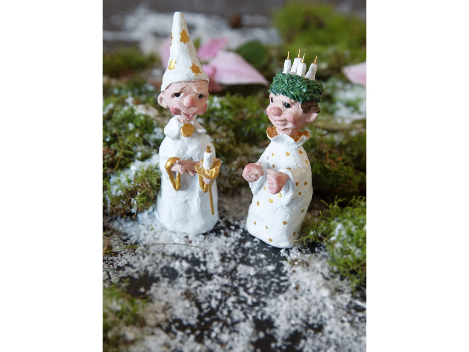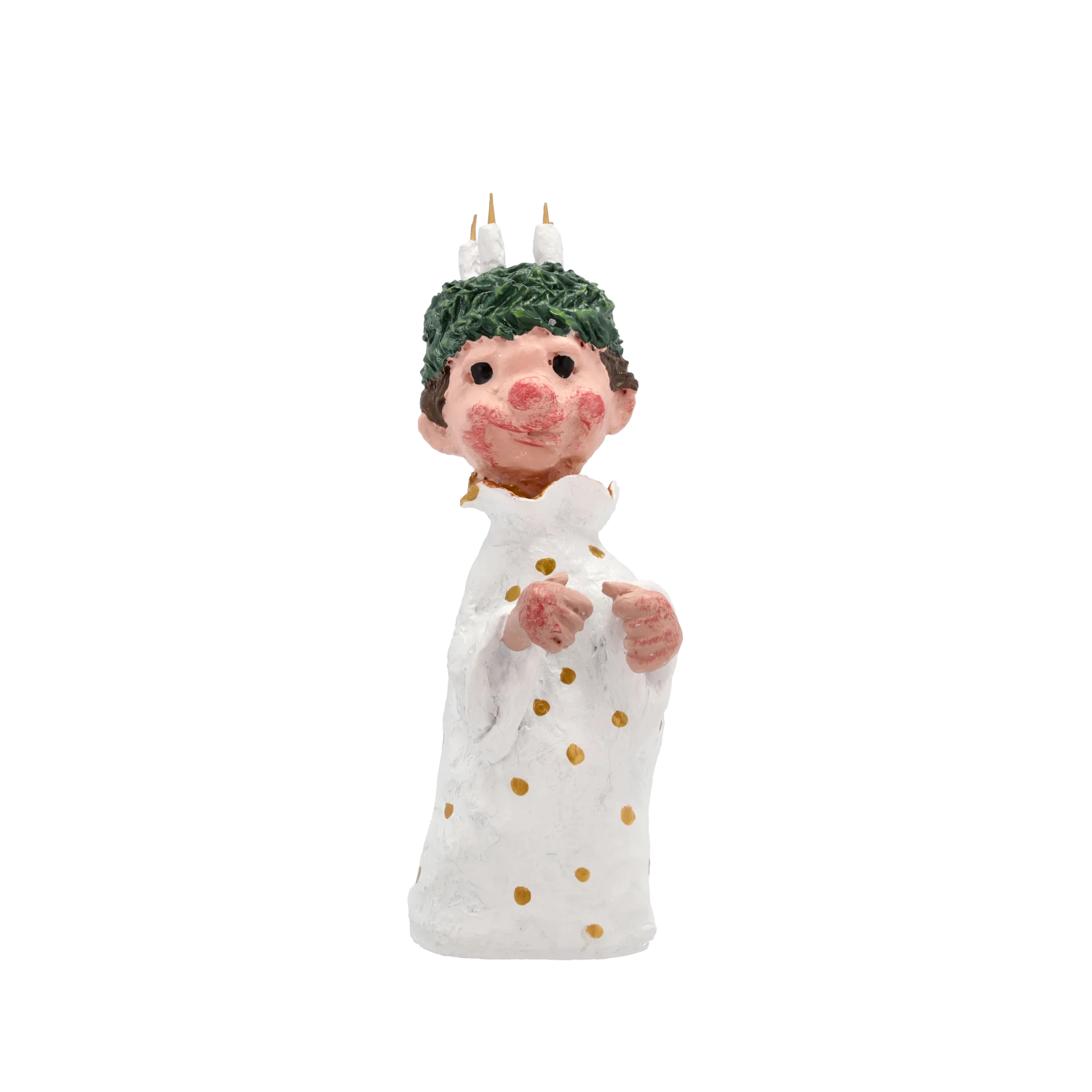 Lucia war eine hilfsbereite Person, die sich nachts mit Essen für ihre christlichen Glaubensgenossen in die geheimen Katakomben der Stadt schlich. Der Lucia-Umzug ist eine schöne alte Tradition in der Vorweihnachtszeit, und es ist wunderhübsch und stimmungsvoll, wenn die Kerzen durch die Dunkelheit getragen werden. Die Figuren des Umzugs sind eine hübsche Dekoration und erinnern uns an Lucia und ihre guten Taten.
