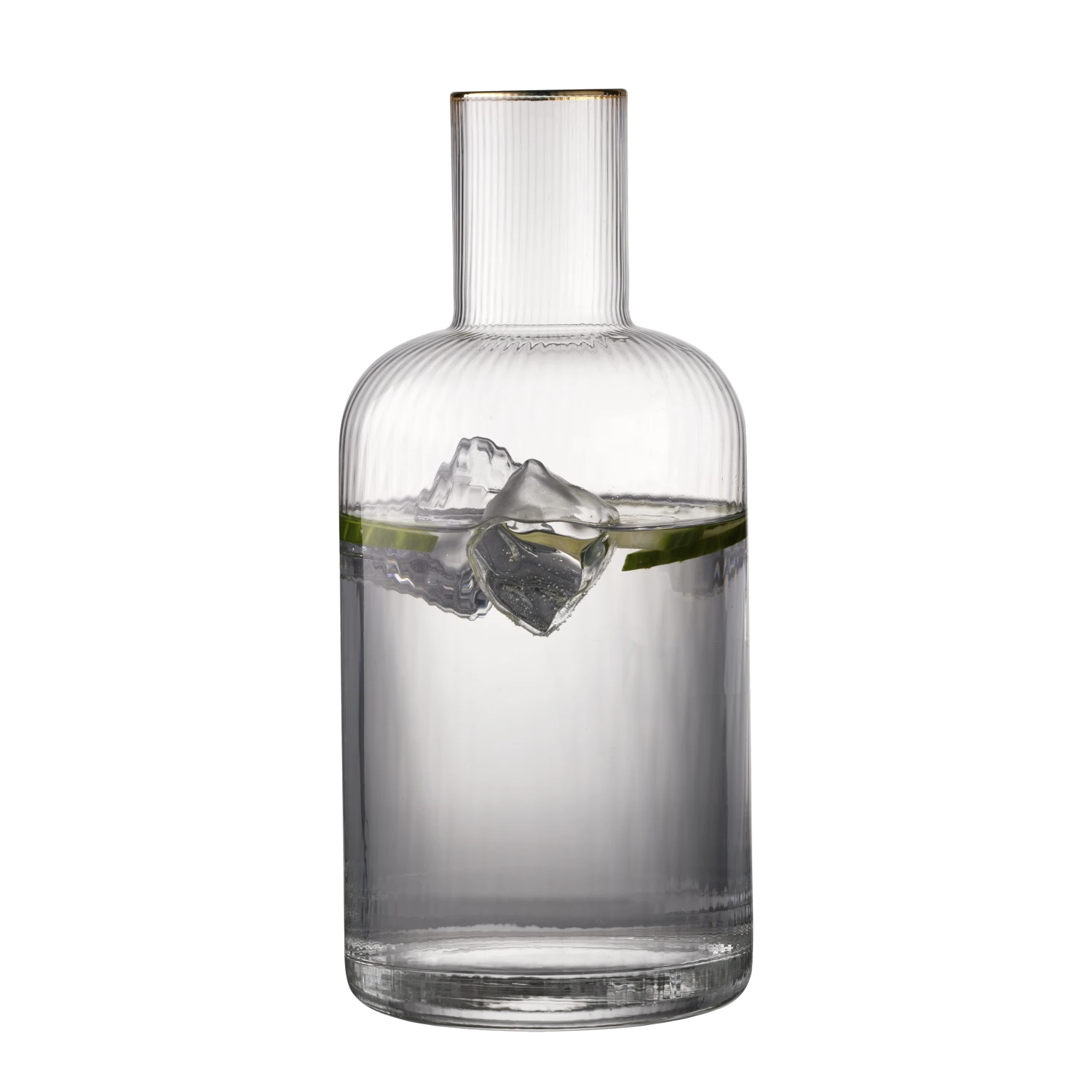 Hübsche Karaffe mit weichen, abgerundeten Formen. Das elegante, geriffelte Design mit hübscher Goldkante verleiht der Karaffe einen tollen Vintage-Look, der gleichzeitig die Trends der Zeit widerspiegelt. Servieren Sie Wasser, Limonade, Saft und andere kühle Getränke in der Karaffe und erleben Sie, wie die feinen Facetten auf wunderschöne Art und Weise das Licht und den Inhalt der Karaffe reflektieren.