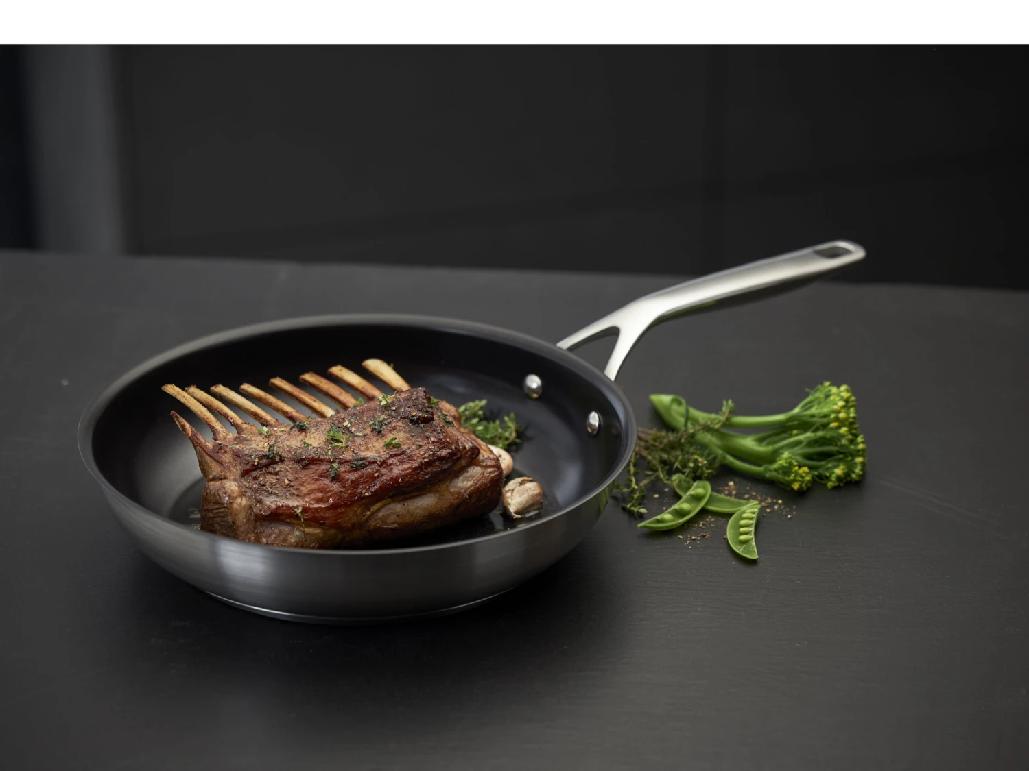 Der Boden der Pfanne besteht aus einem Aluminiumkern mit einer Schicht aus Edelstahl auf beiden Seiten, auch Sandwichboden genannt, der für eine gute Wärmeverteilung sorgt. Die Pfanne verträgt alle Küchenutensilien, aber wir empfehlen Zubehör aus Holz, Kunststoff oder Silikon. Wir empfehlen, die Pfanne von Hand abzuspülen. Der Waschgang in der Spülmaschine verkürzt die Lebensdauer der Keramikbeschichtung.