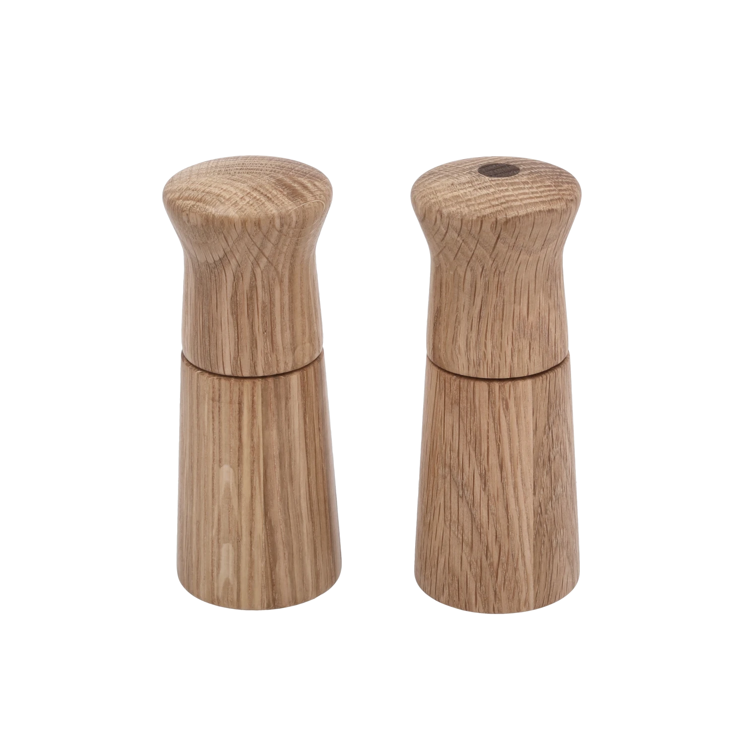 Salz- und Pfeffermühlen-Set aus Eichenholz. Die keramische CrushGrind® Mühle wurde so entwickelt, dass sie sowohl Salz und Pfeffer als auch alle anderen Arten von getrockneten Kräutern und Gewürzen mahlen kann – Sie können also gerne auch Ihre Lieblings-Gewürzmischung in die Mühlen füllen.