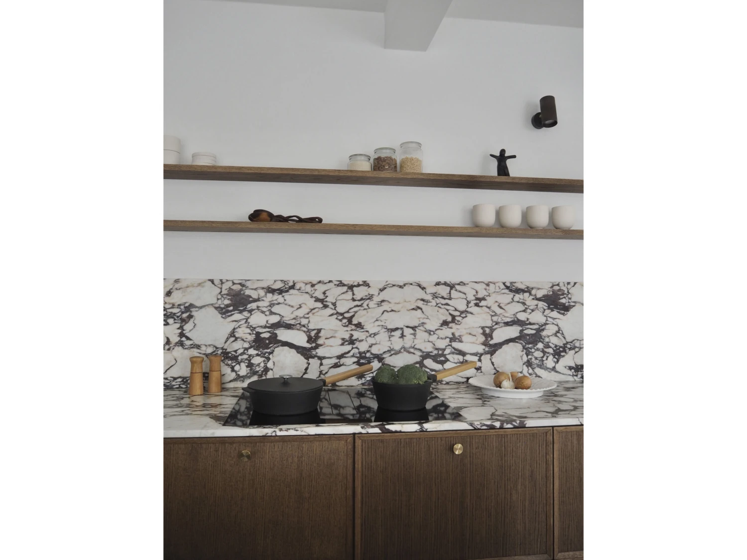 Gusseisen ist ein extrem haltbares Material, das fast unzerstörbar ist, wenn es korrekt gereinigt und gepflegt wird. Die Reinigung sollte mit heißem Wasser erfolgen. Sorgen Sie dafür, dass Gusseisen völlig trocken ist, bevor es weggeräumt wird. Kann mit Öl nachbehandelt werden. Morsø Gusseisen kann recycelt werden.