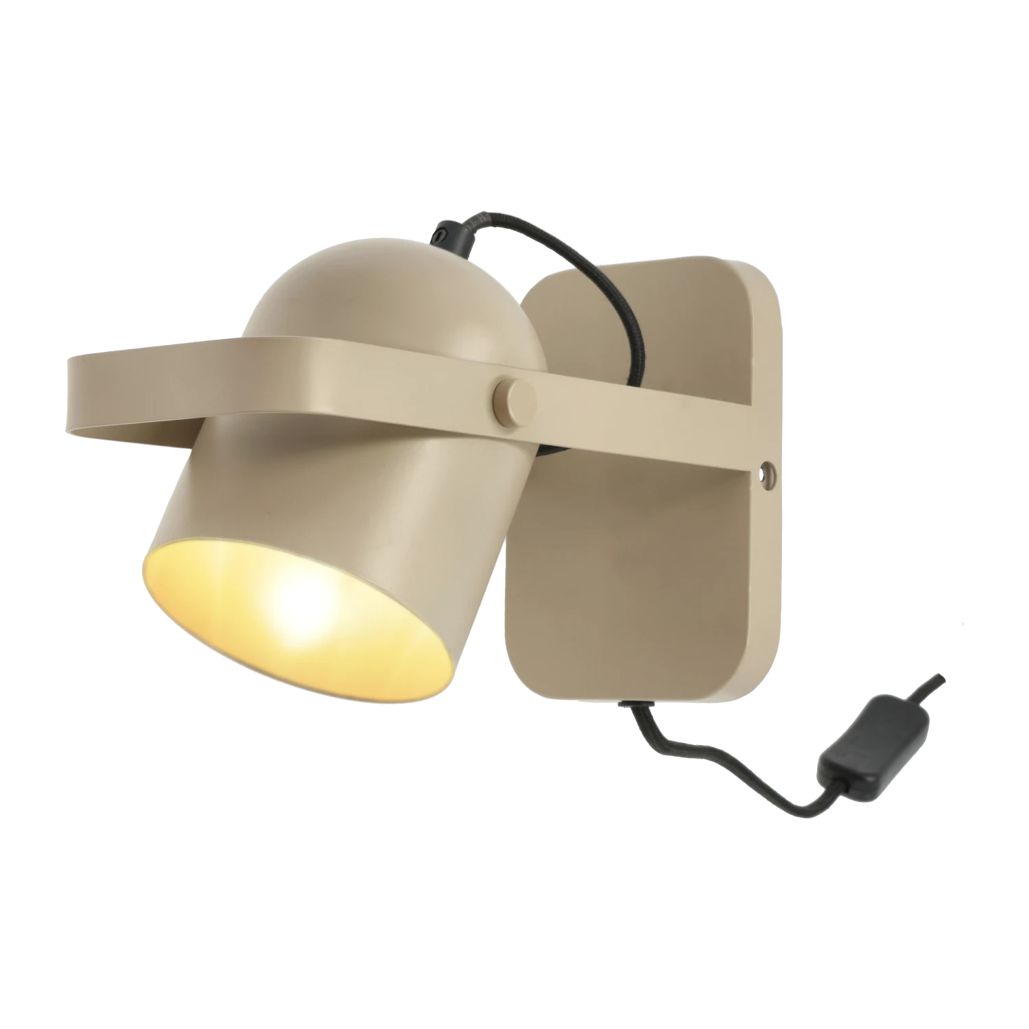 Wandleuchte aus sandfarbenem Eisen mit einem Schirm, der gekippt und in die gewünschte Position gedreht werden kann. Die perfekte Arbeitslampe in der Küche, oder als Nachttischlampe im Schlafzimmer, wo die Schwenkfunktion beim Lesen im Bett nützlich ist. Die Wandleuchte hat ein industrielles Design, das hervorragend zu einem minimalistischen Einrichtungsstil passt.