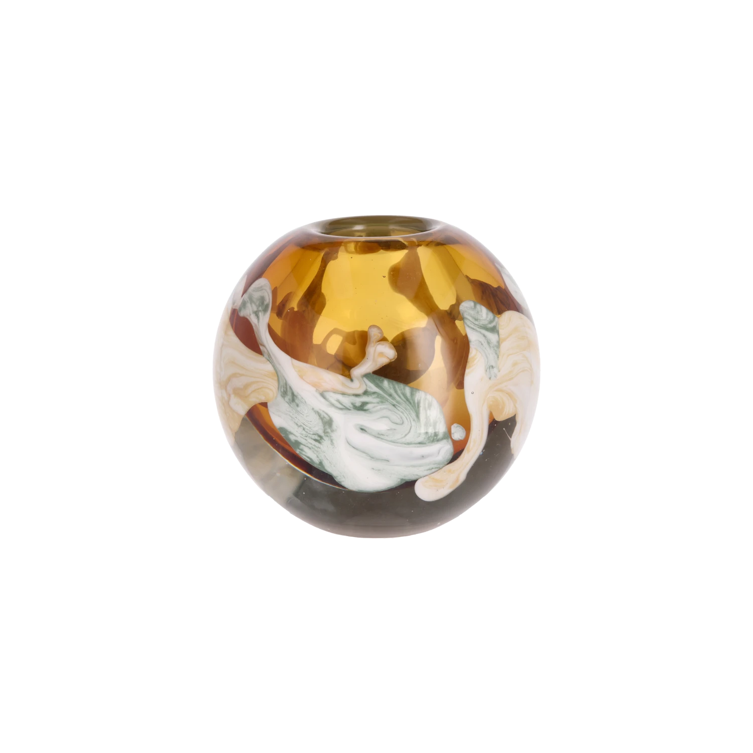 Von der Natur inspirierte Glasvase aus mundgeblasenem Glas in schönen Naturfarben und mit weichen Formen, die dem Auge schmeicheln. Die Inspiration für die Vase stammt aus der nordischen Natur: Hitzewellen und Meereswellen, die aufeinandertreffen. D 11 cm, H 10,5 cm.