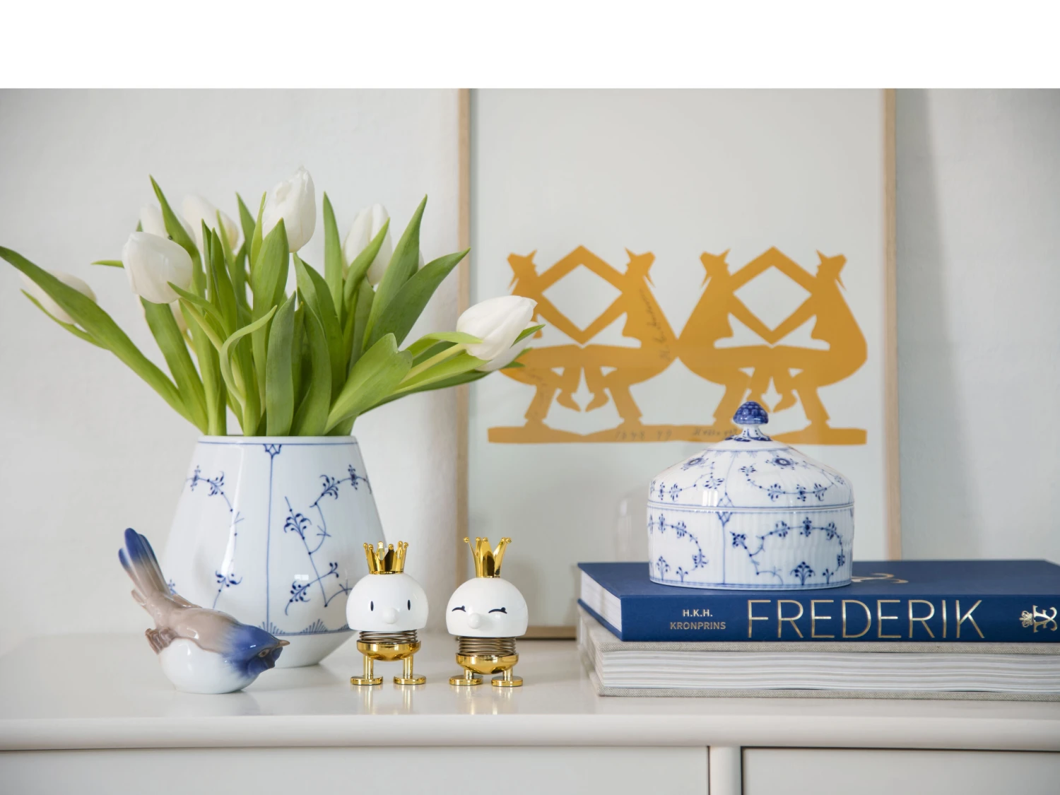 Bimble und Bumble repräsentieren die allerersten Hoptimisten aus der Hand des Designers: Ein für die Schule gekleidetes Mädchen mit lächelnden Augen und ein aufmerksamer Junge mit einem Splint auf dem Kopf. Die fröhlichen Hoptimisten sind heute ein Teil der dänischen Designgeschichte und sorgen weltweit für Freude.