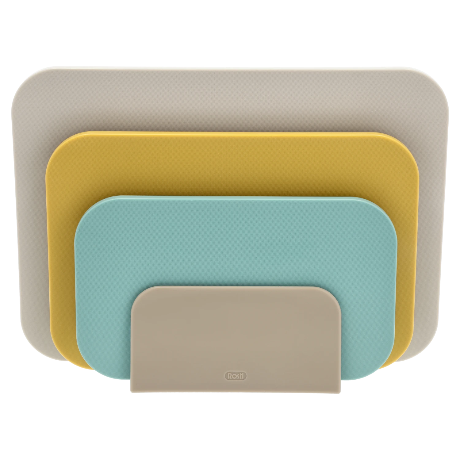 Die drei Größen haben die gleiche Stärke und können auch sehr gut zum Servieren am Tisch verwendet werden – für Brot, Wurst, Käse und Tapas-Gerichte. Aus diesem Grund sind die hübschen Farben der Serie mit großer Sorgfalt ausgewählt, und mit den ansprechenden Formen wird das Set zu einer dekorativen Ergänzung Ihrer Küchenausstattung.
