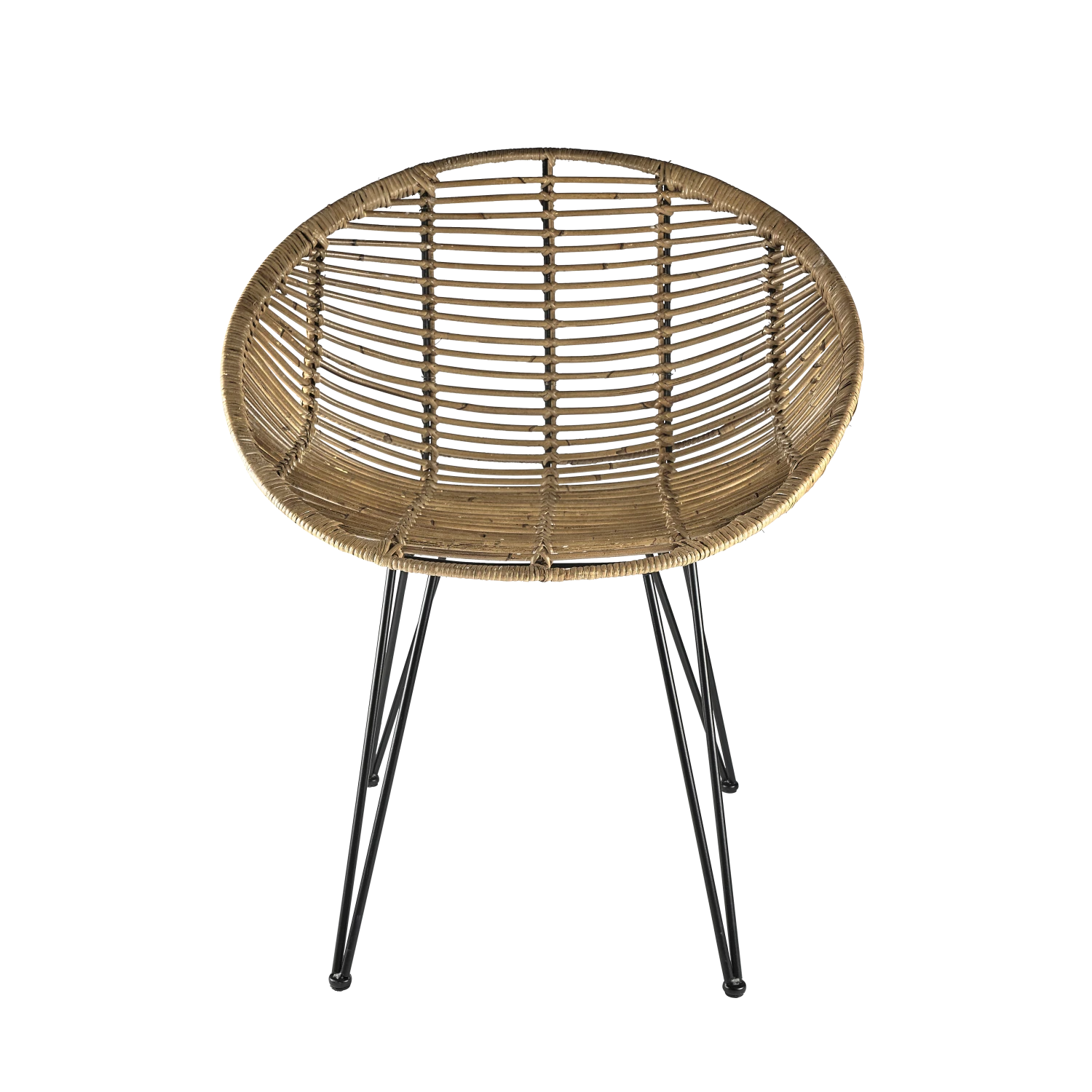 Stuhl aus Natur-Rattan mit schwarzem Metallrahmen. Mit dem hübschen und natürlichen Rattan holt der Stuhl die Natur in die Wohnung. Eine weiches Fell im Stuhl kann als hübsches kleines Detail dienen, das dem Stuhl einen neuen und anderen Look verleiht.
