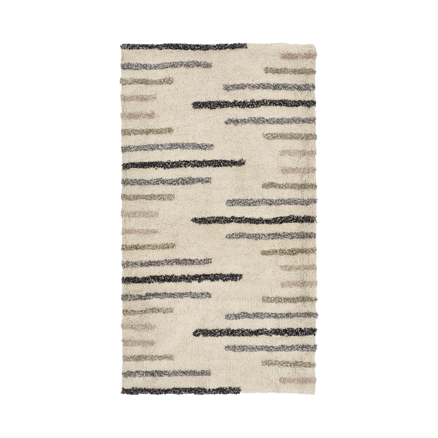 Der handgetuftete Tactile-Teppich mit einer schlichten Hochflor-Konstruktion ist der Schlüssel für einen weichen Look in der Wohnung. Denken Sie daran, gemütliche Textilien mit einer taktilen Oberfläche zu verwenden, um der Einrichtung eine multisensorische Note zu geben. Die matten Fasern und die subtilen Ecru- und Grautöne sorgen für eine raffinierte Gemütlichkeit, die unverzichtbar ist, wenn man die typisch skandinavische Ästhetik und den typisch skandinavischen Stil erzielen möchte.