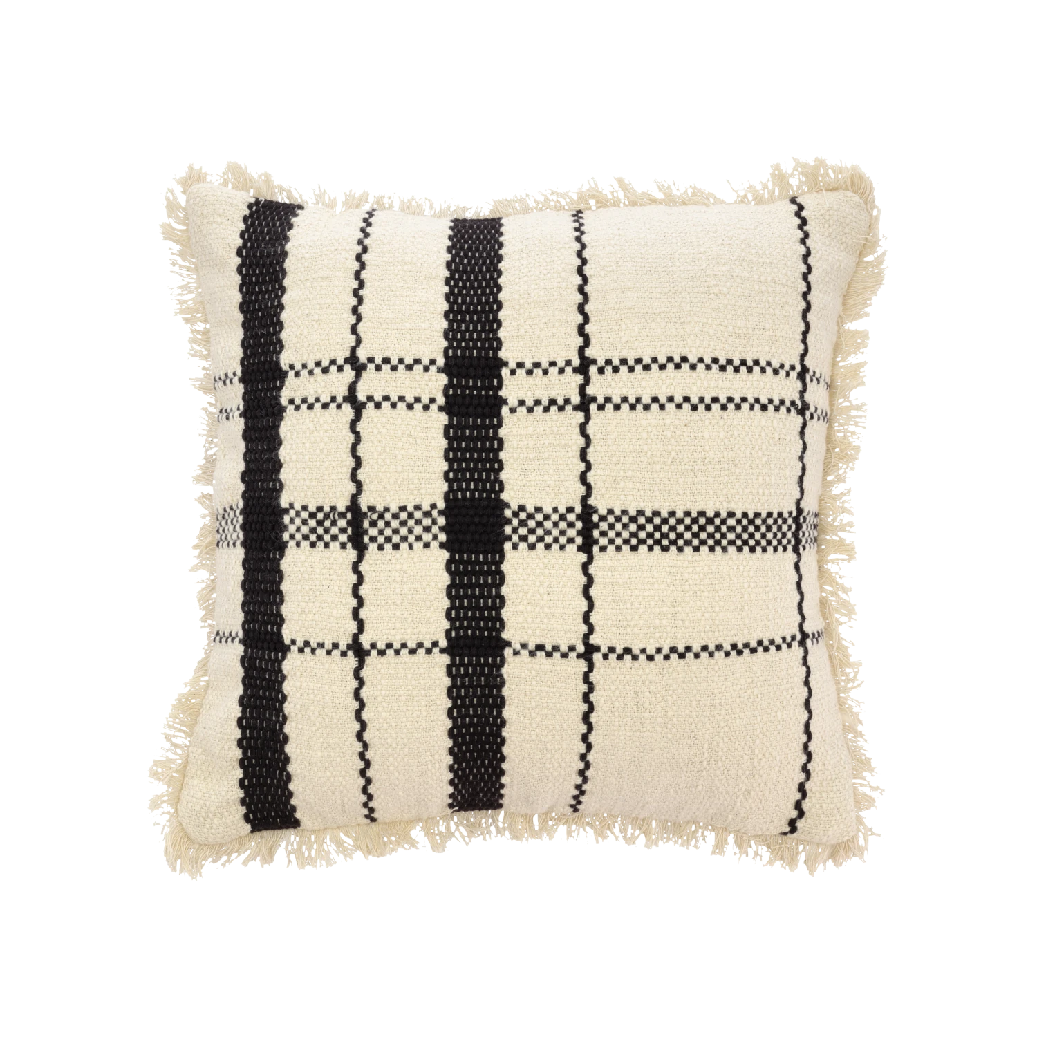 Das Kissen Urban ist eine raffinierte Interpretation zeitloser Karomuster. Das Muster ist in einen kräftigen Slub-Garnstoff mit Fransen an den Seiten gewebt. Die markanten Karos und neutralen Farben bieten ein hohes Maß an minimalistischer Ästhetik.