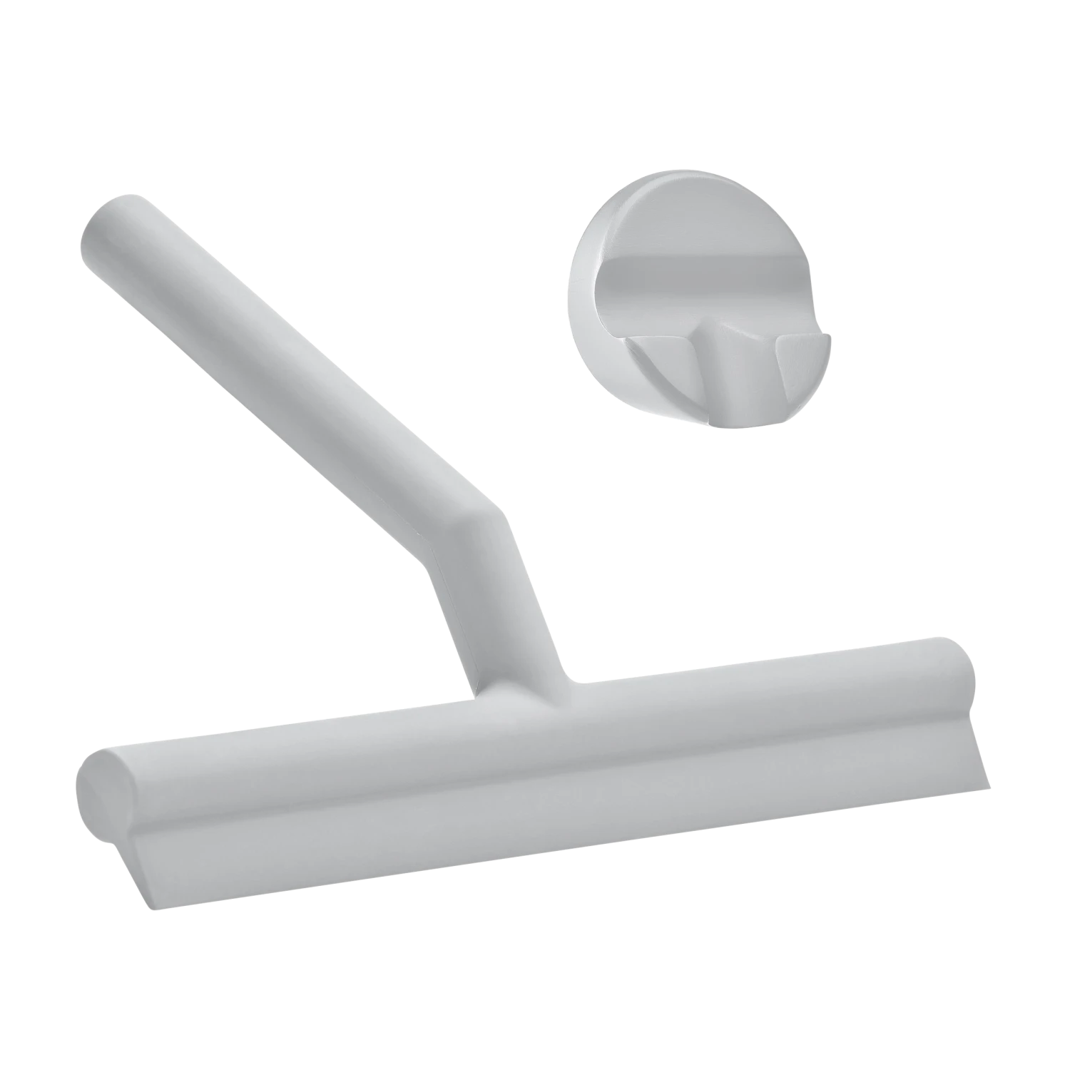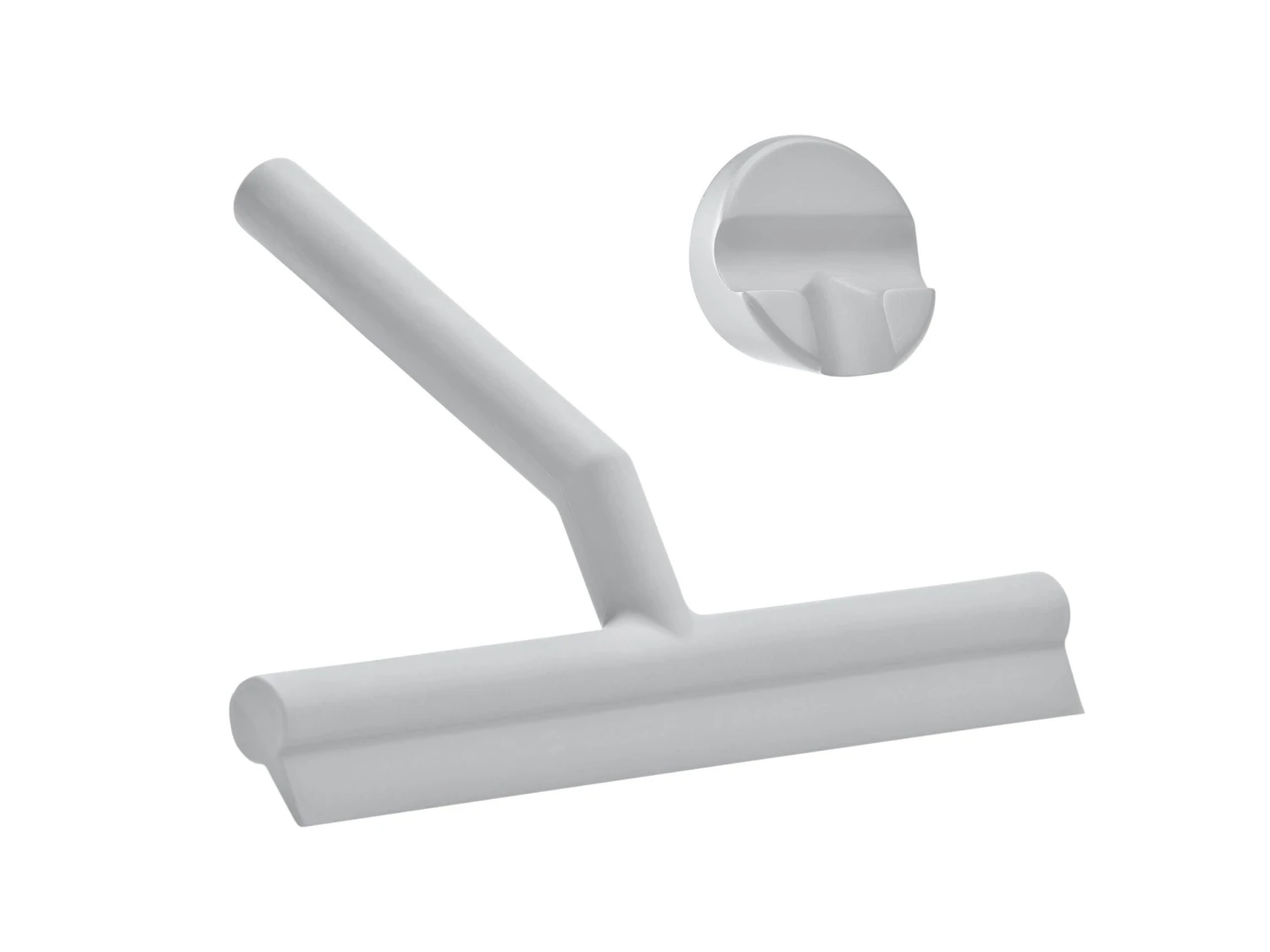 Duschschaber aus einfach geformtem Silikon ohne rostige Metalloberflächen. Der Schaber erleichtert das Entfernen von Wasser von rutschigen Oberflächen. Das funktionale und einfache Design ist schön zu bedienen und schön anzusehen – und gleichzeitig ist Hygiene erstklassig.