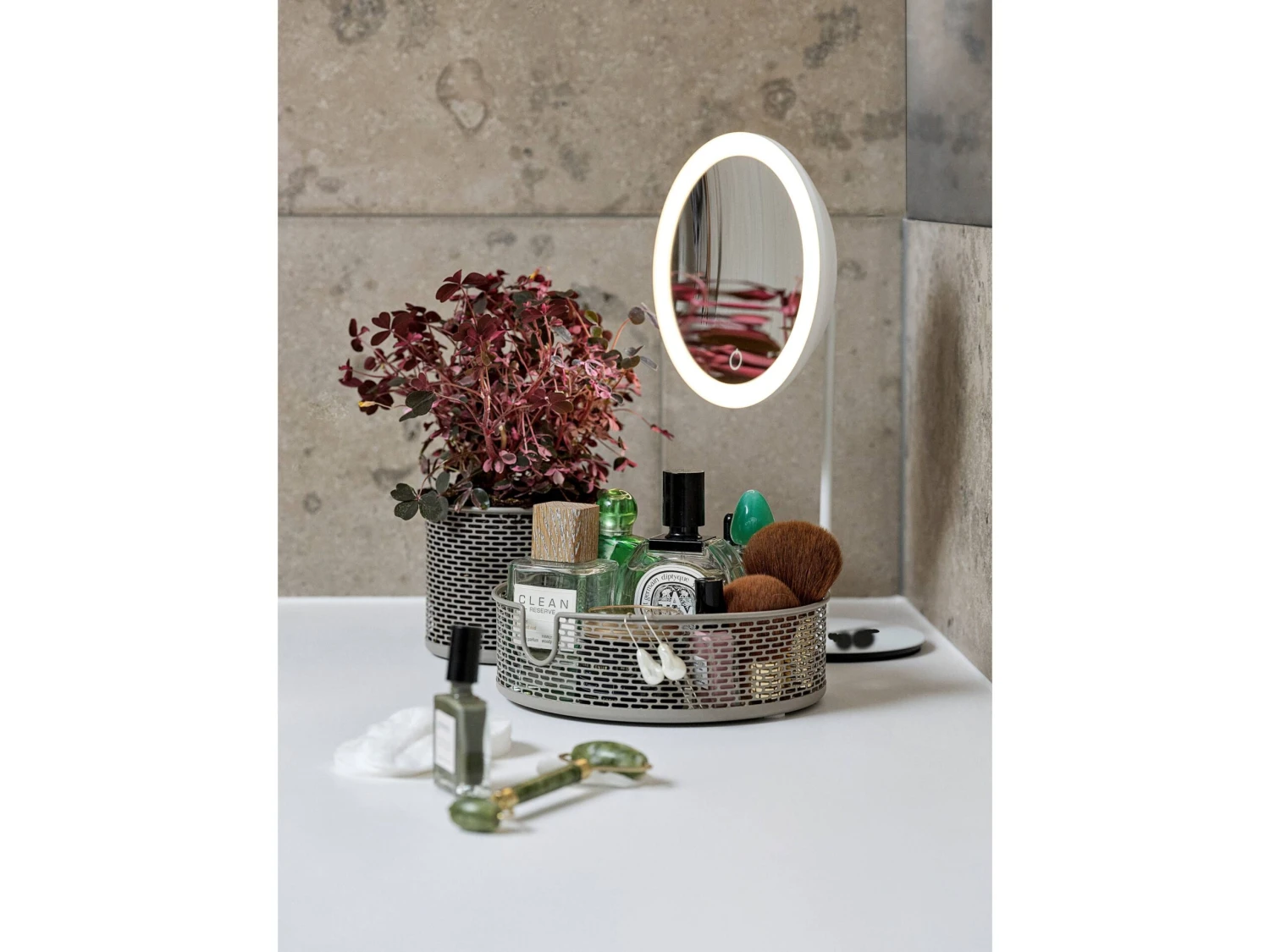 Tischspiegel mit 5-fache Vergrößerung und Touch-Schalter, 3 Lichtstufen und nach zehn Minutten Abschaltautomatik. Betrieb durch 4 AA Batterien (wird nicht mitgeliefert).