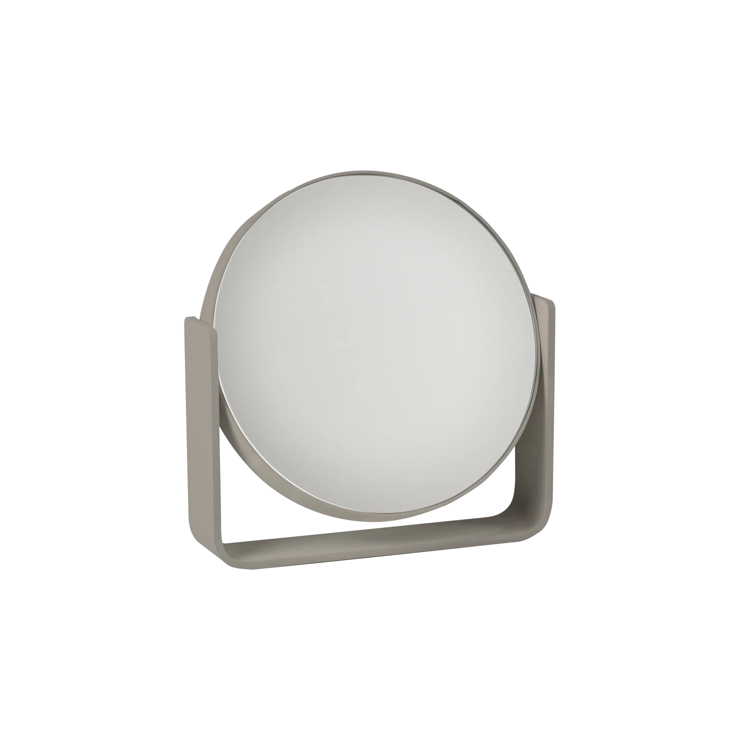 Unverzichtbarer Tischspiegel, der eine hübsche Dekoration bildet, wo auch immer Sie ihn platzieren. Die eine Seite ist ein gewöhnlicher Spiegel, während die andere um das Fünffache vergrößert. Der Spiegel dreht sich sicher um die eigene Achse, da er von einem breiten Aluminiumrahmen getragen wird, der gleichzeitig die stabile Basis des Spiegels bildet. Es ist pulverlackiert und hat eine ansprechende, matte Optik. Der Spiegel fügt sich hervorragend in den Rest der beliebten UME-Serie ein und ist in allen 7 Farben erhältlich: Black, White, Soft Grey, Grey, Eucalyptus, Taupe, Olive Green.